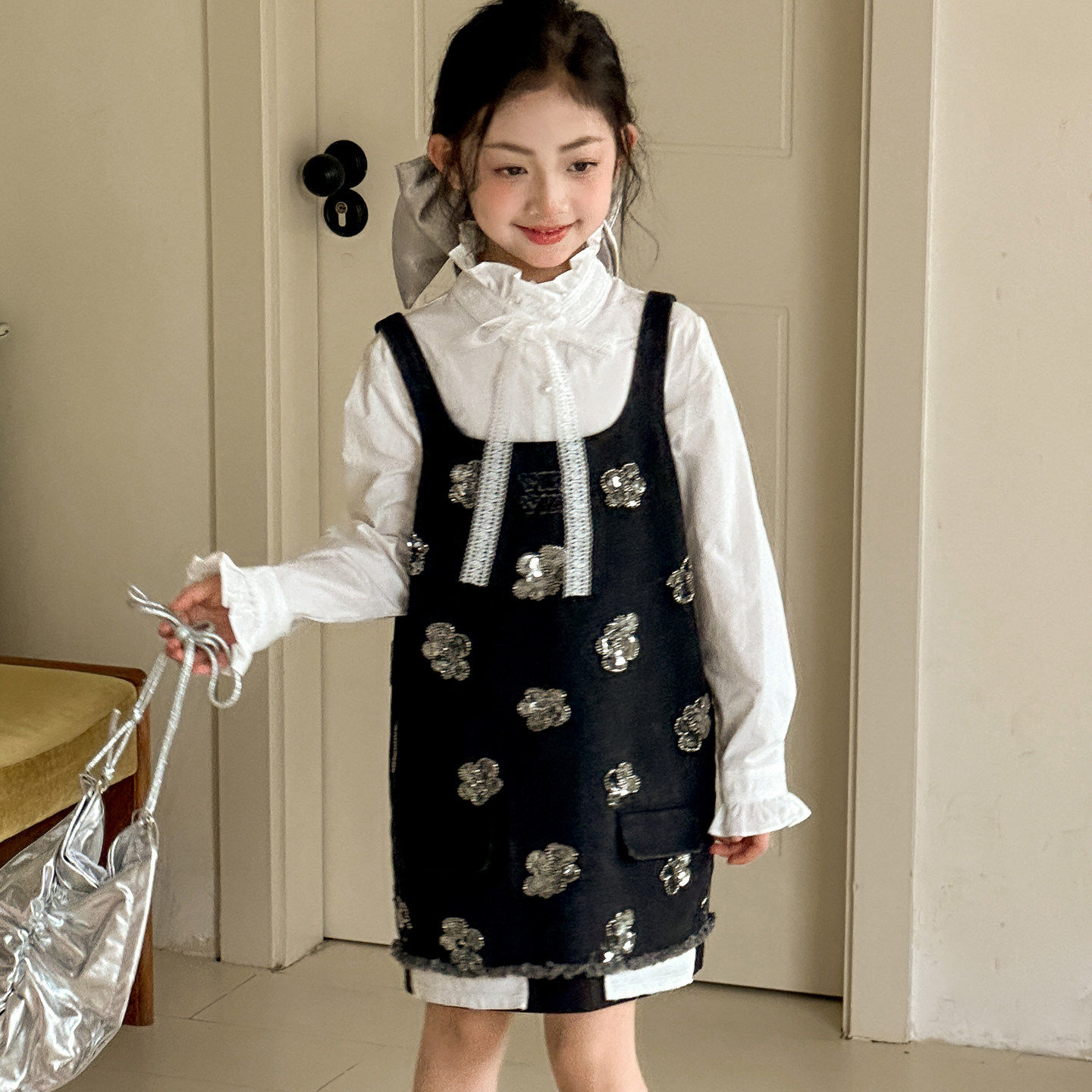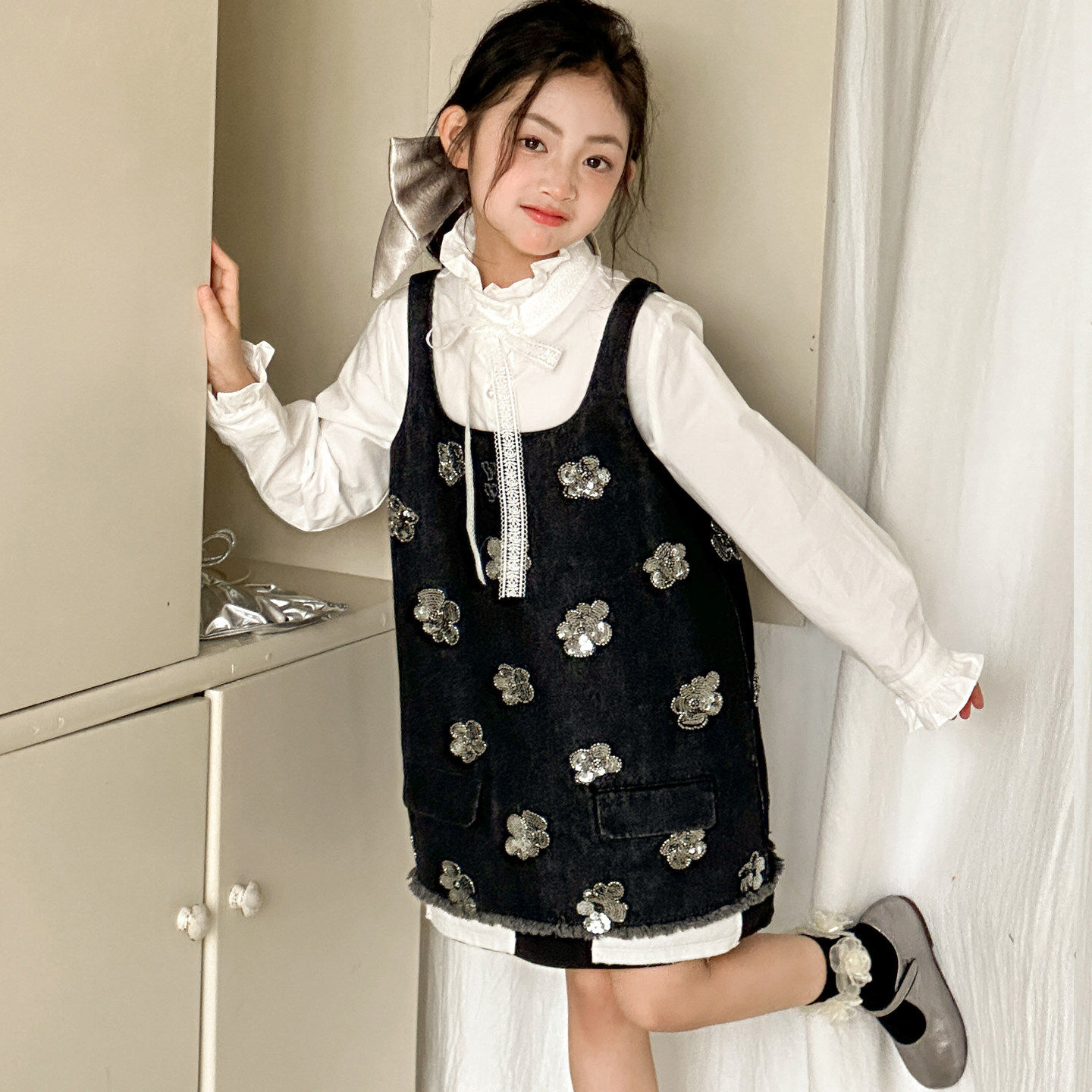 女童背带裙2026新款春装儿童套装裙洋气衬衫春秋衣服女大童牛仔裙