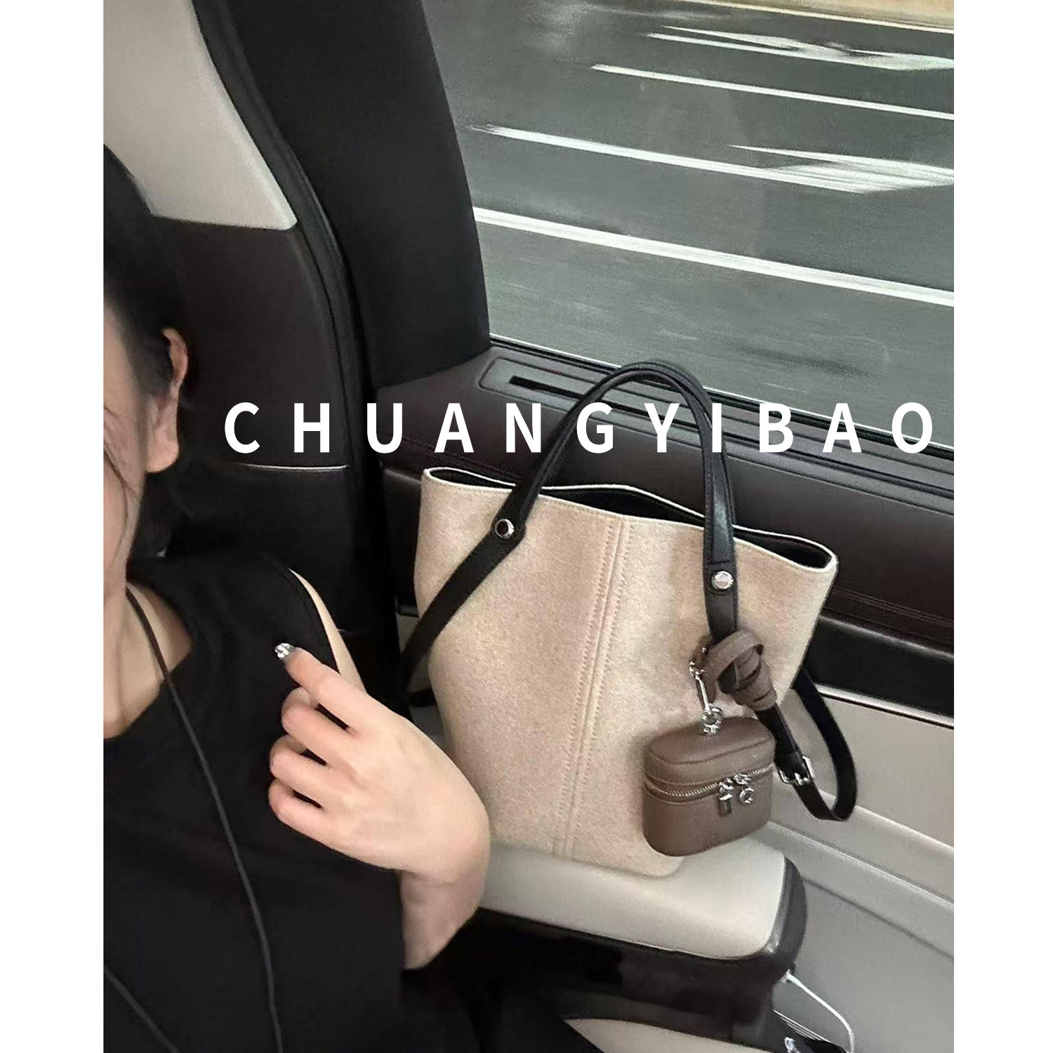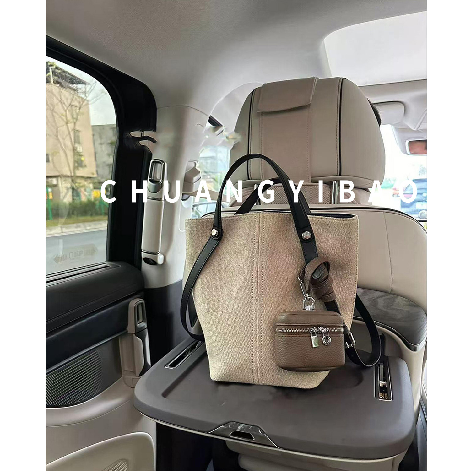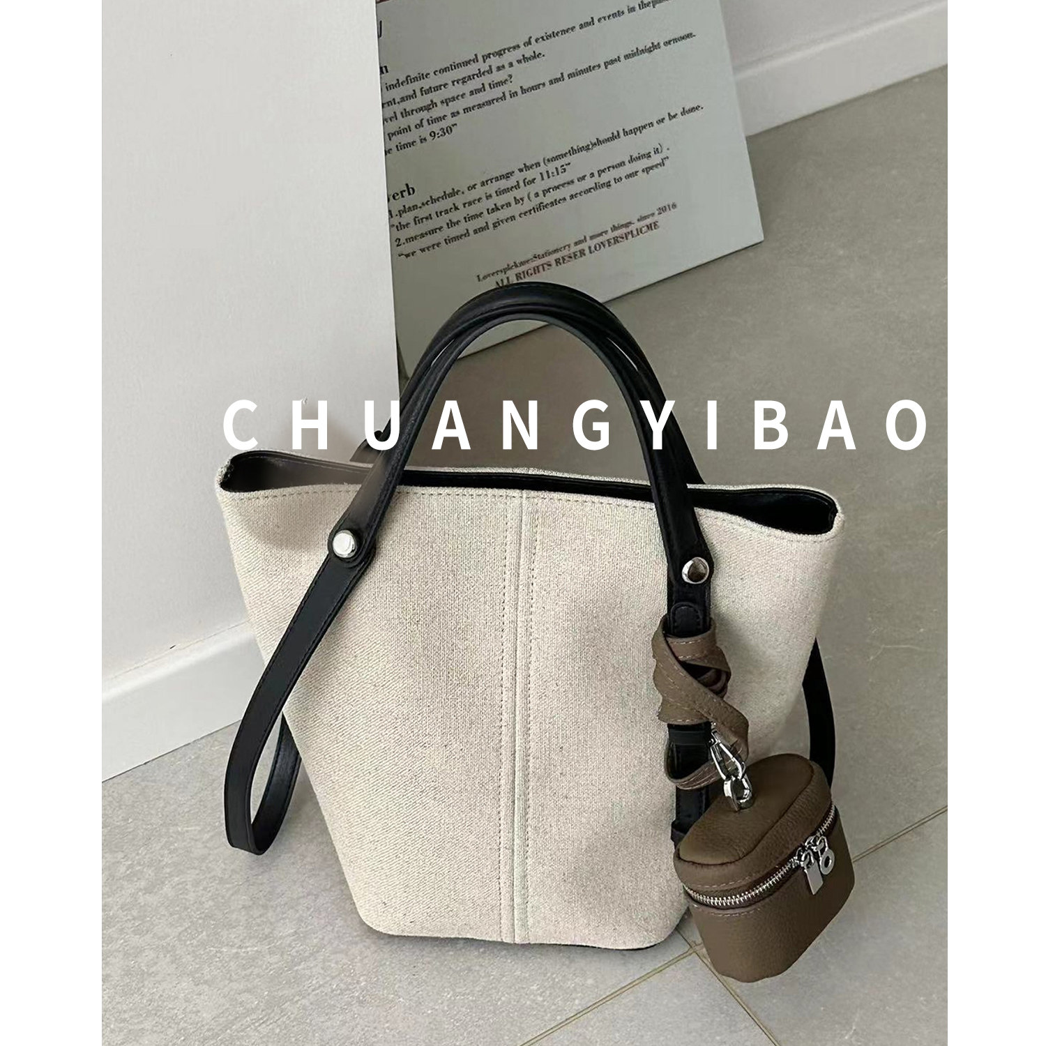 超火亚麻帆布大容量托特包包女式2026新款手提水桶包高级感斜挎包