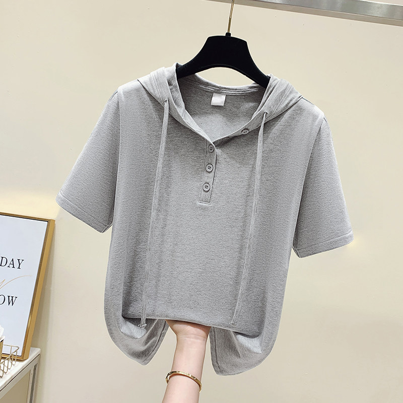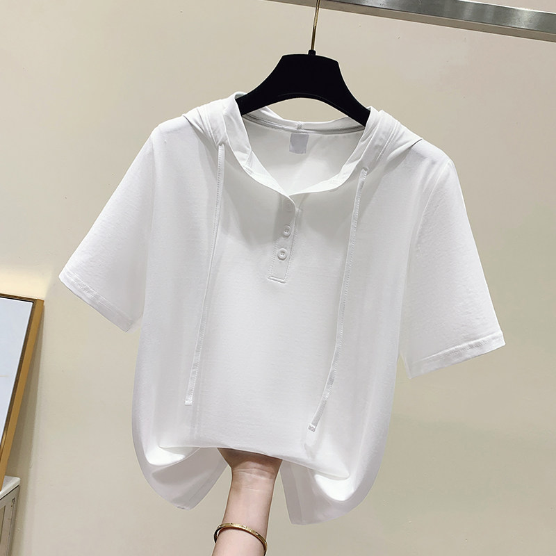 连帽短袖t恤女士装夏季2026年新款纯棉宽松显瘦洋气小衫半袖上衣