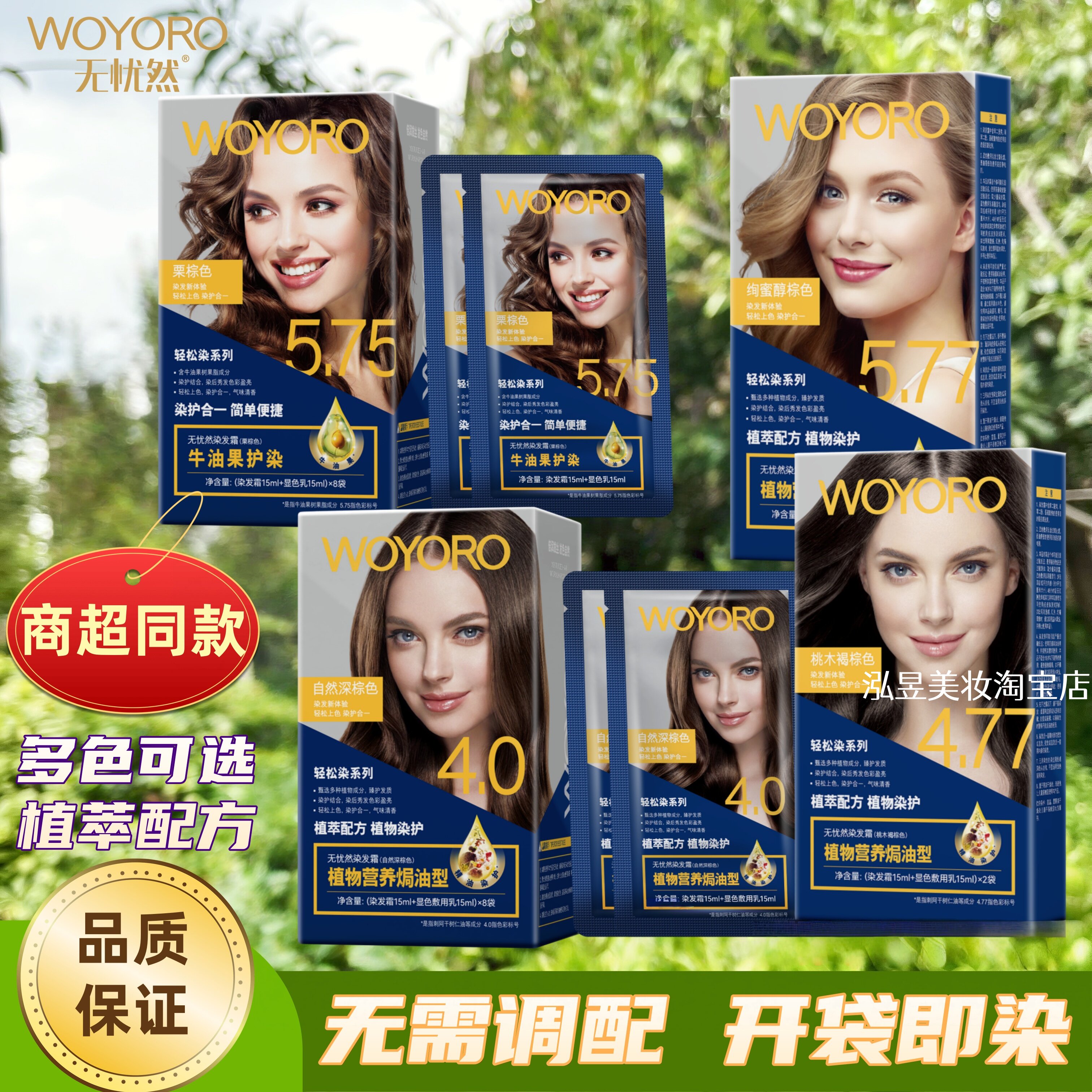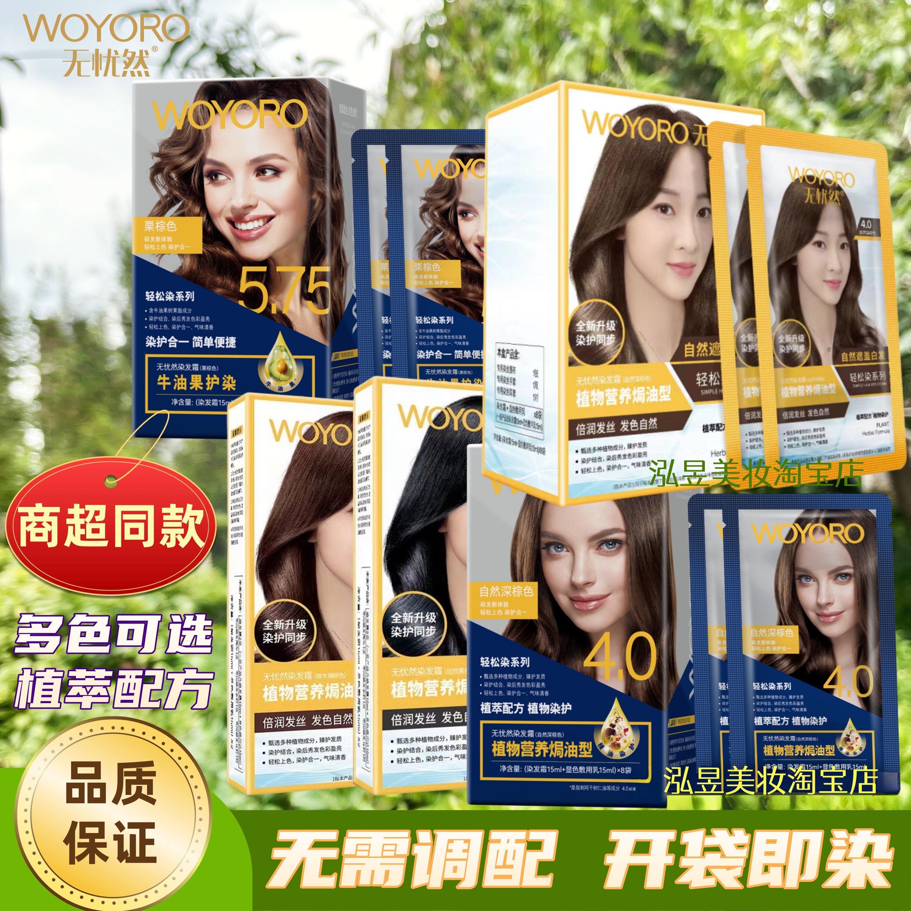 无忧然染发霜正品轻松染植物焗油型男女自己染遮盖白发染发膏剂