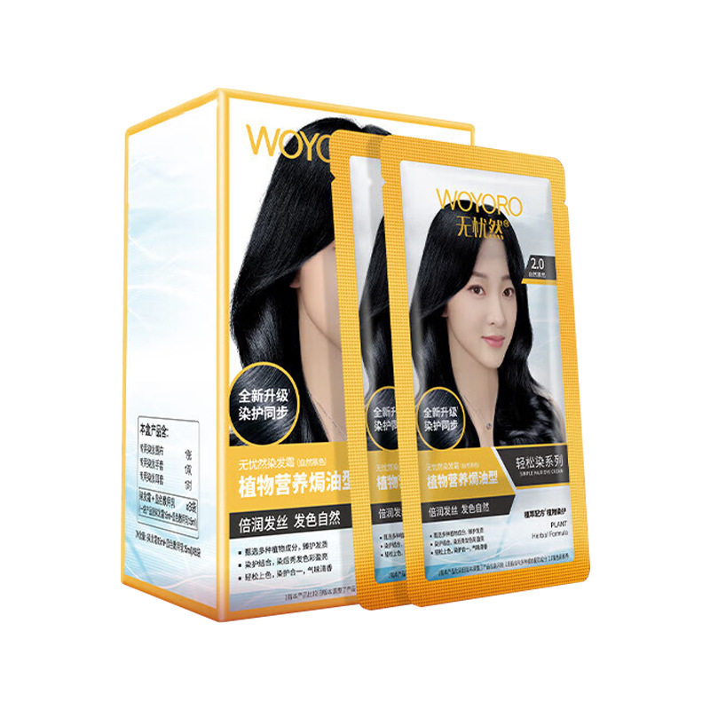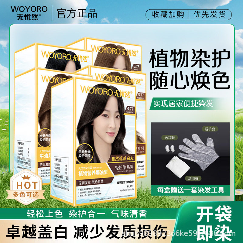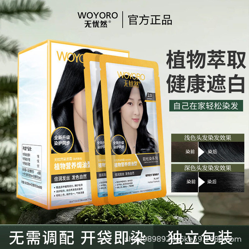 无忧然染发剂袋装染发膏霜小包装植物焗油型护理柔顺遮白自然黑棕