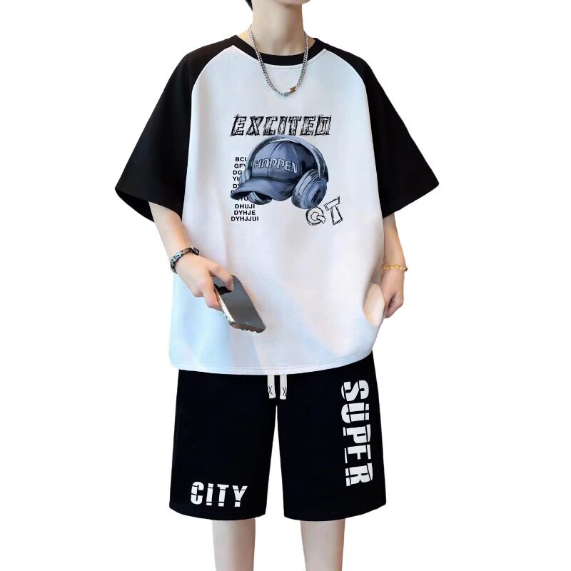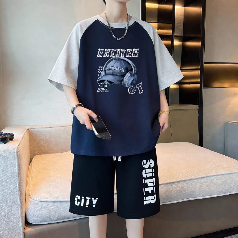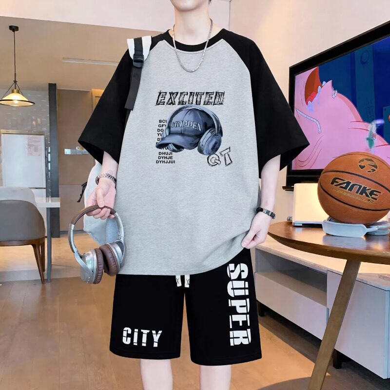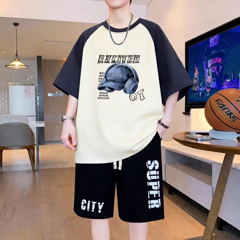 青少年夏季套装男孩初高中学生纯棉短袖t恤大童男装运动衣服一套