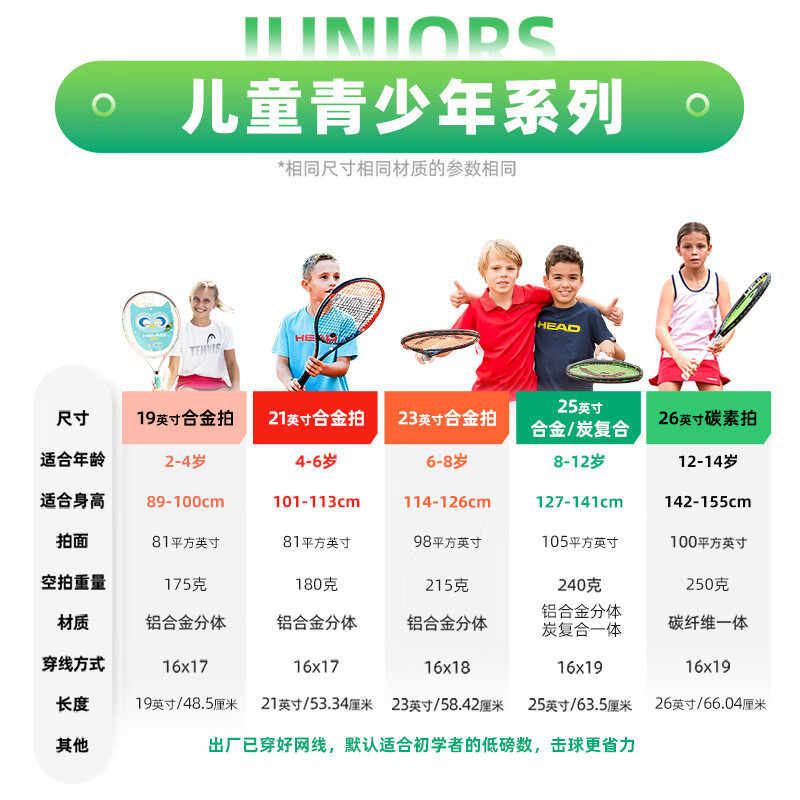 HEAD海德网球拍儿童运动训练初学者2025新款高端碳纤维全碳素一体
