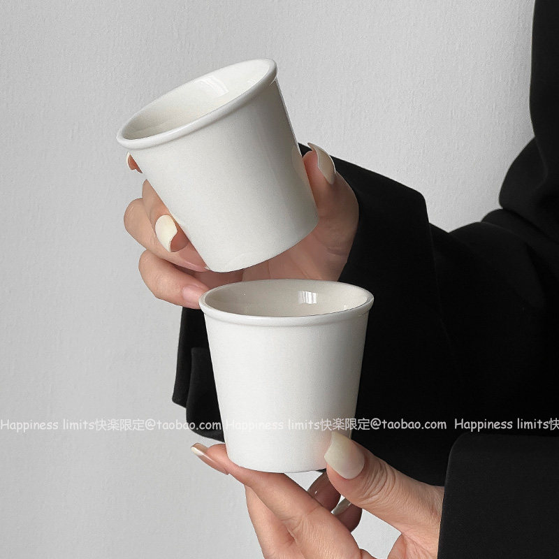 韩国ins风创意纸杯造型陶瓷手握杯简约dirty纯色拿铁杯咖啡拉花杯