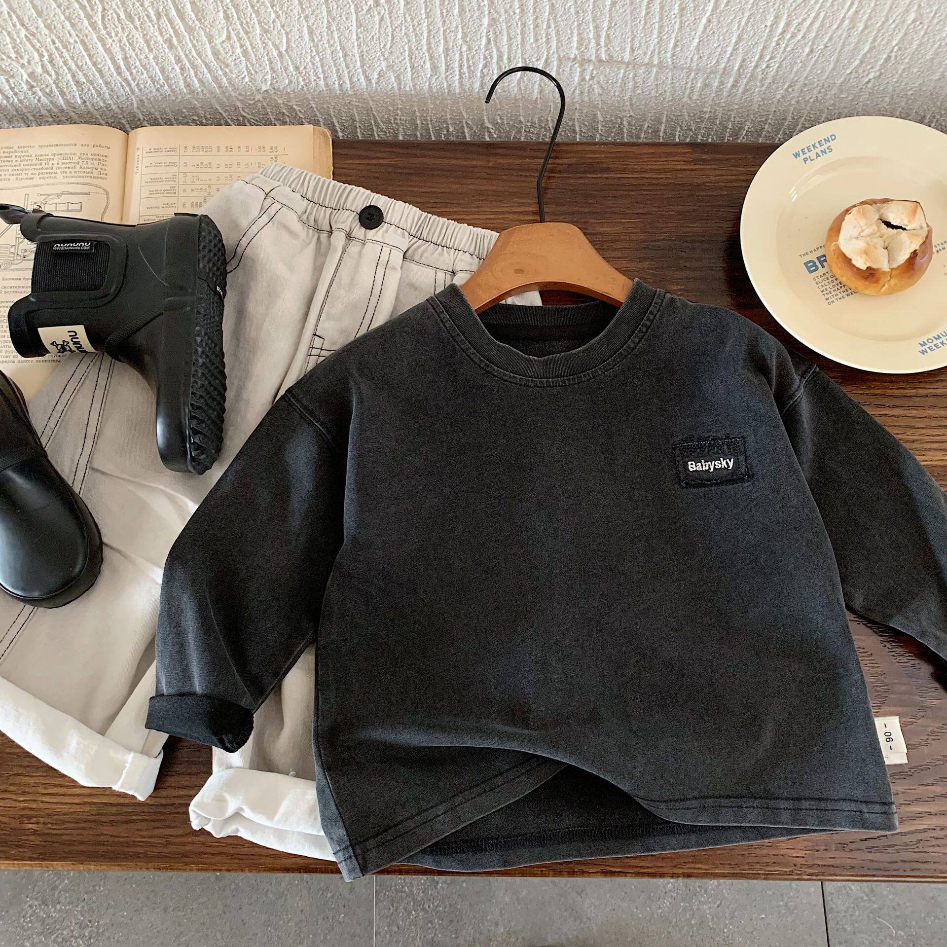 男童春秋纯棉长袖t恤2025新款儿童韩版宽松复古打底衫宝宝秋装潮T