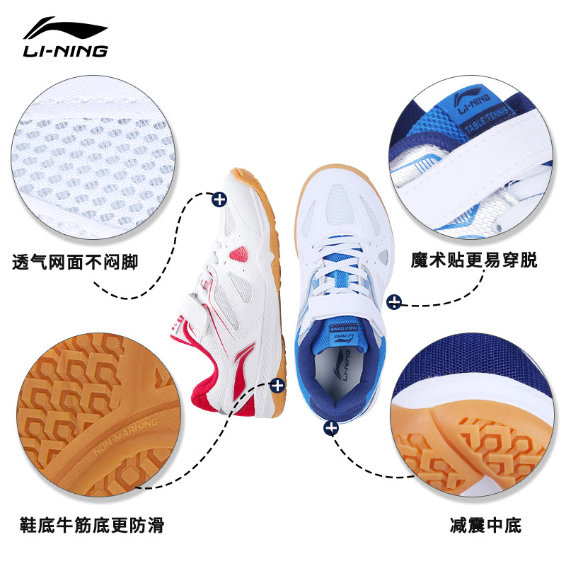 李宁儿童乒乓球鞋男童专业比赛训练女童防滑牛筋底透气减震运动鞋