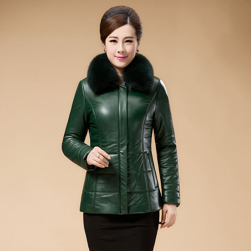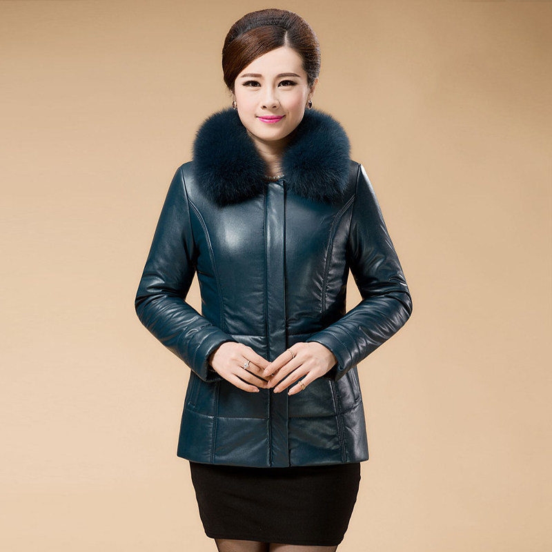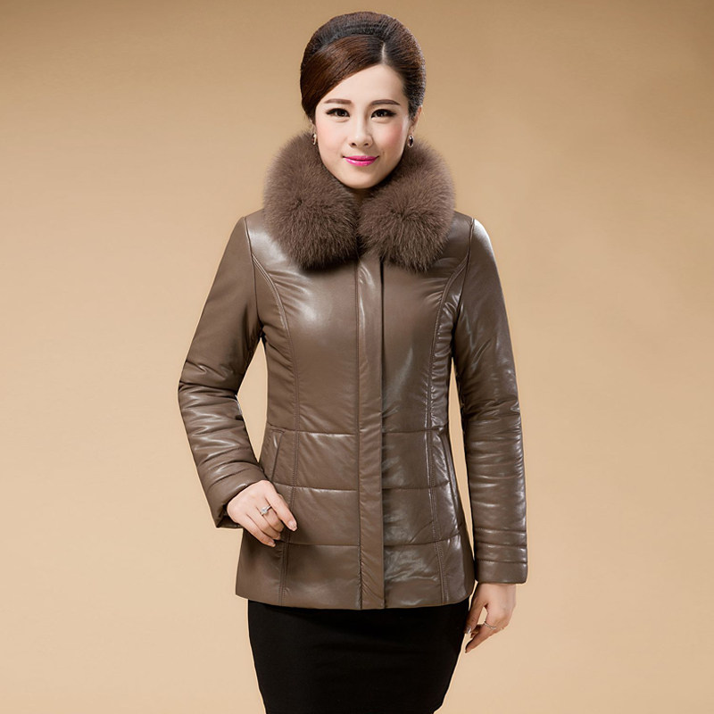 冬季皮衣加绒加厚妈妈装保暖真皮女士羽绒服中年中年短款皮棉衣外