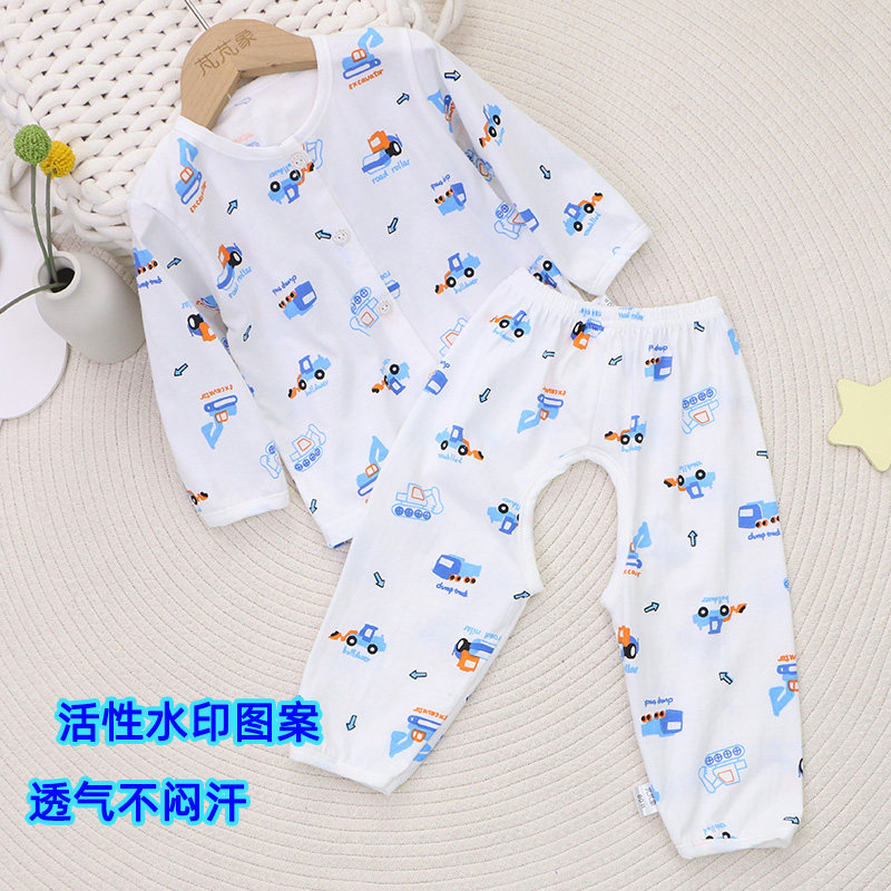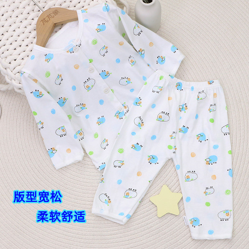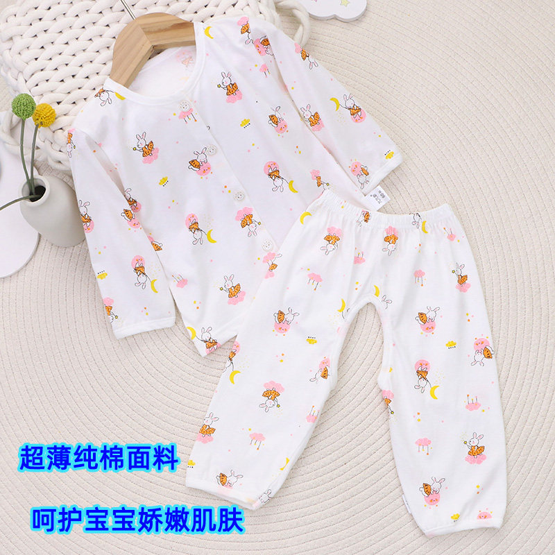 纯棉宝宝套装薄款女童长袖T恤开裆长裤男童a类睡衣夏季家居空调服