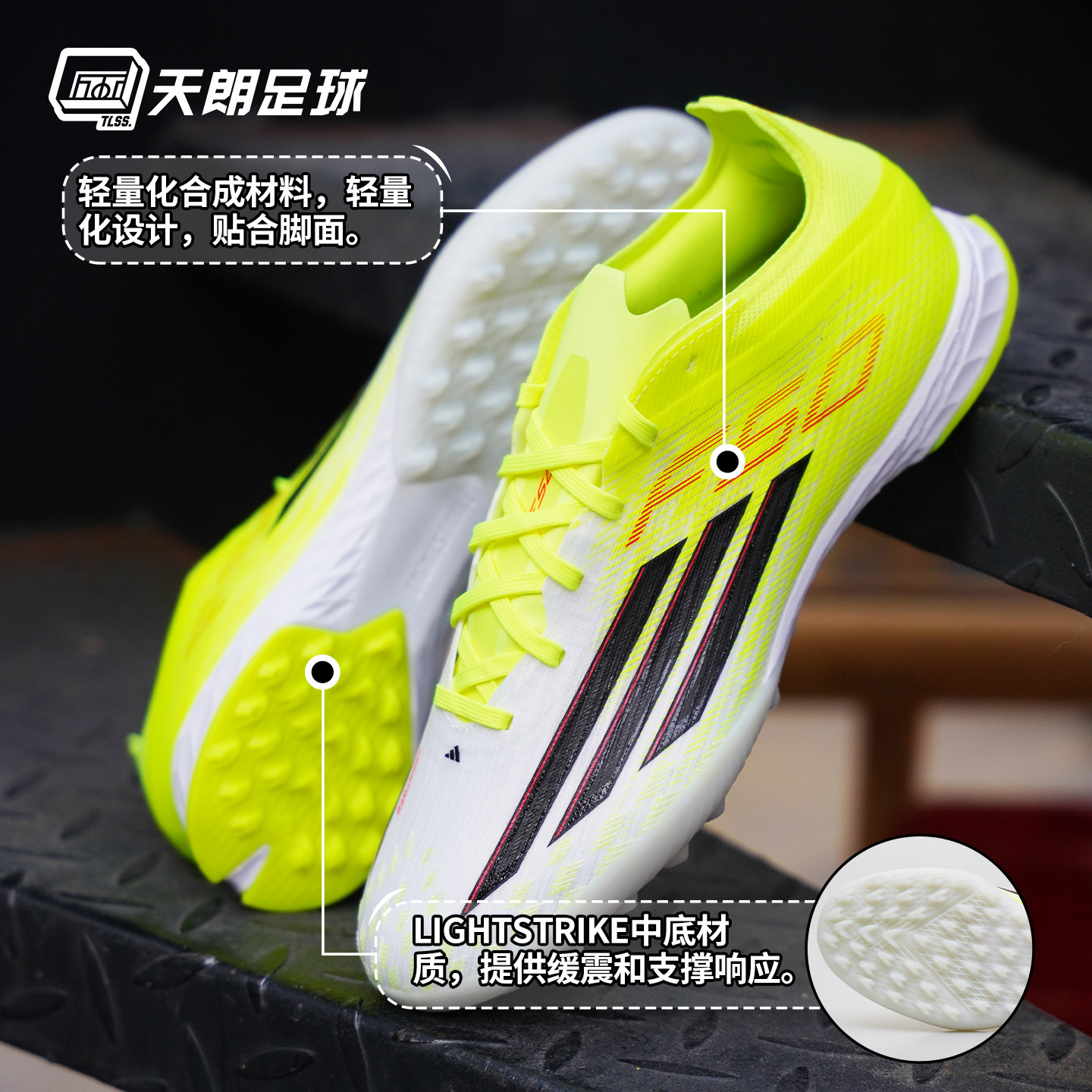 天朗足球Adidas/阿迪达斯F50 PRO TF次高端碎钉人草足球鞋JR8943