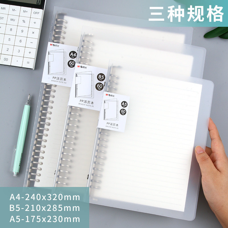 晨光活页本可拆卸本子送分隔页横线网格替芯笔记本子考研记录本A4软壳A5大学生加厚线圈本外壳夹简约B5不硌手