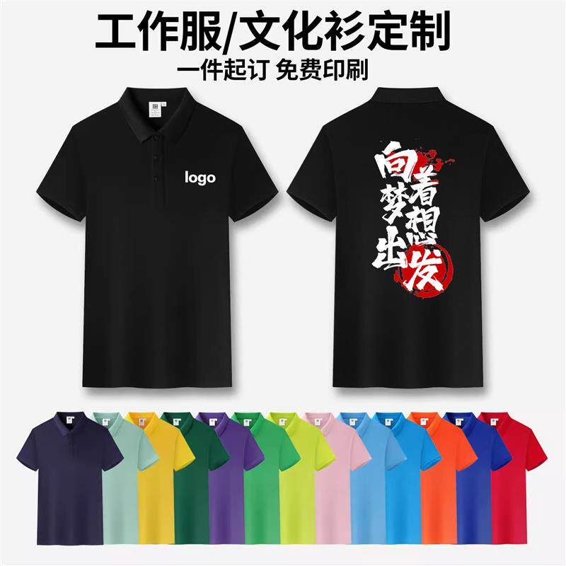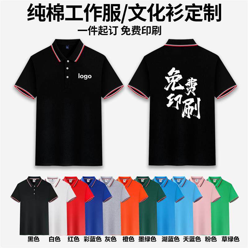 T恤定制印logo纯棉翻领工作服广告衫刺绣夏季文化衫团队服高端