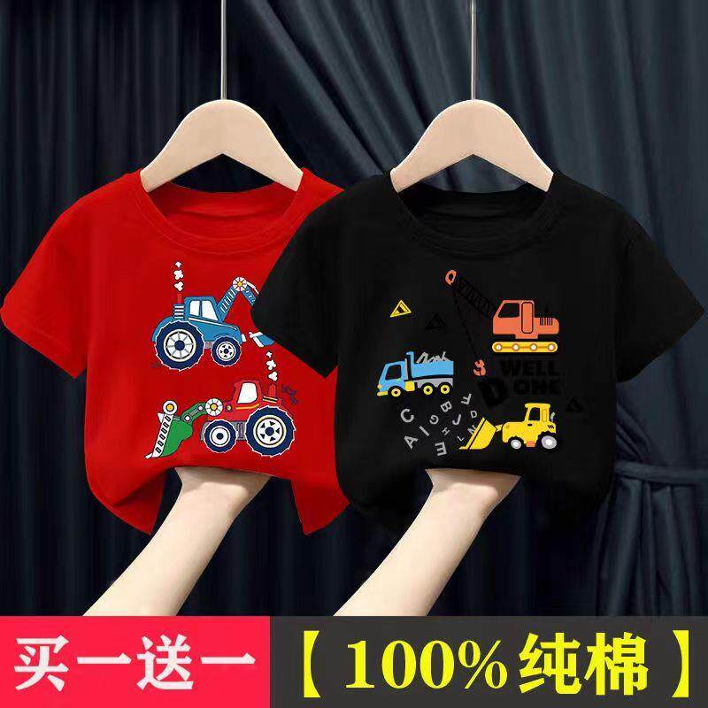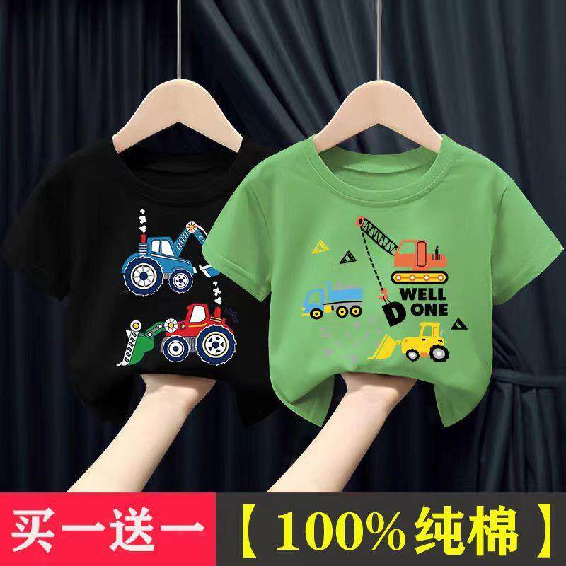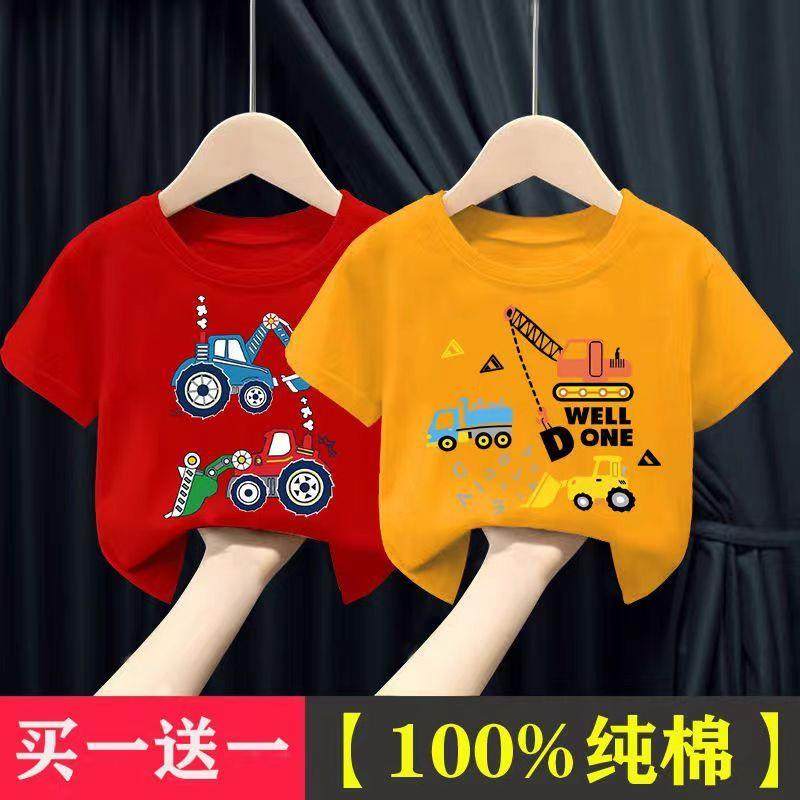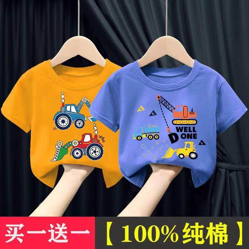 2026夏季新款男童短袖儿童上衣T恤男纯棉男童卡通挖掘机短袖T恤潮