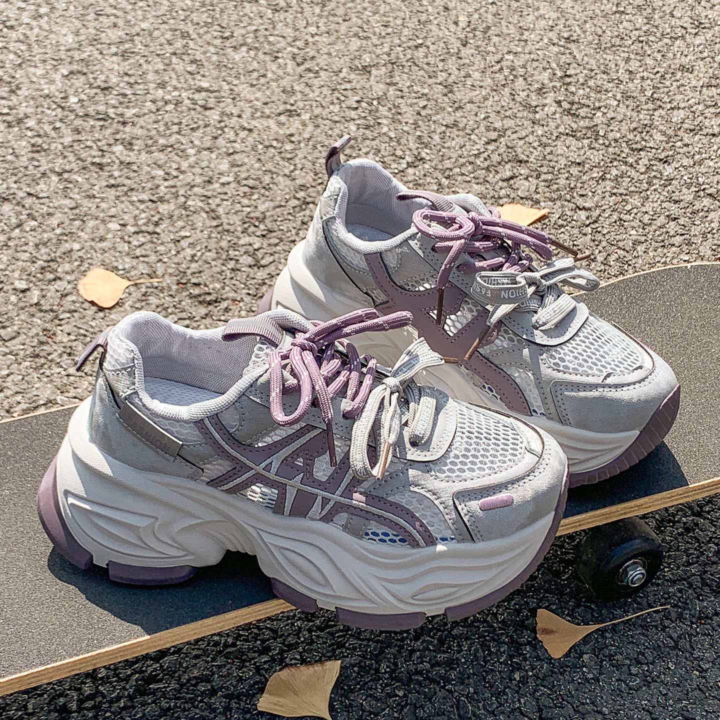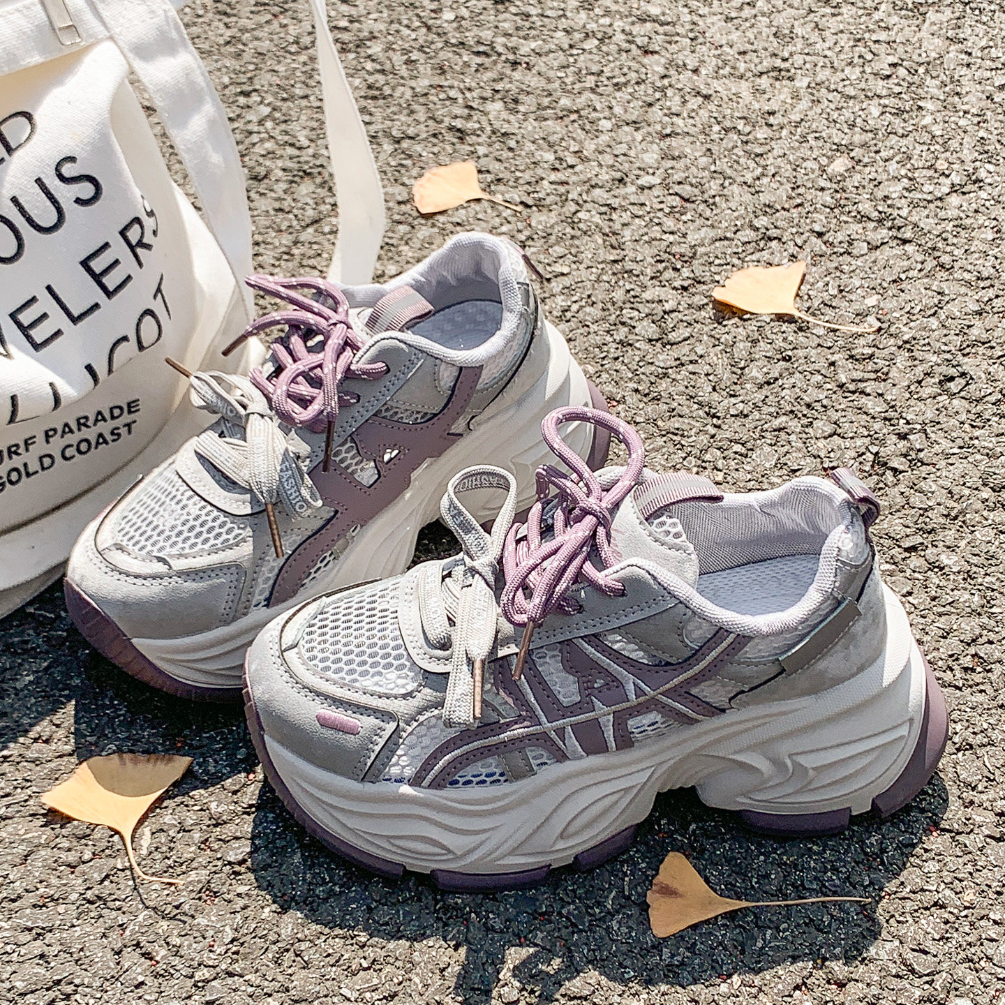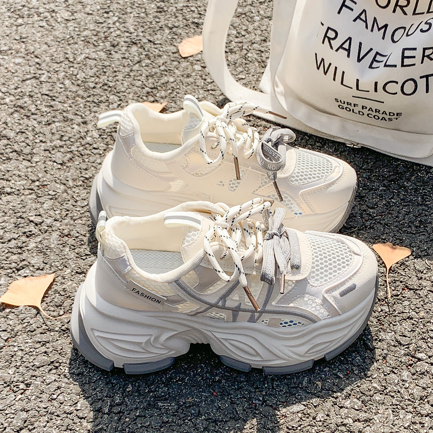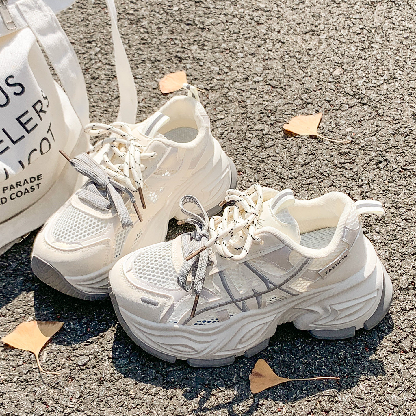 311线报网描述:薄款网面透气厚底增高老爹鞋