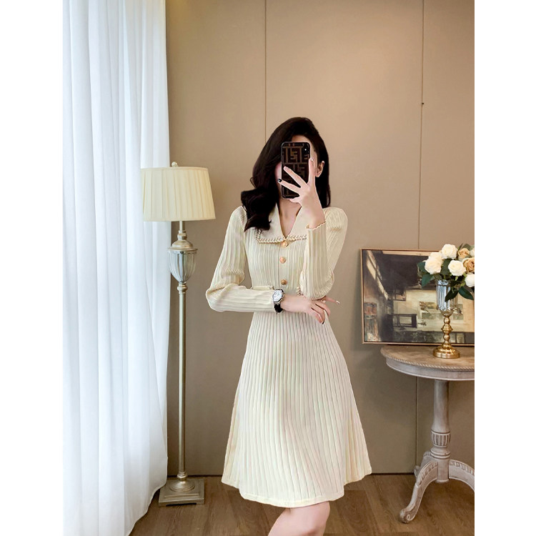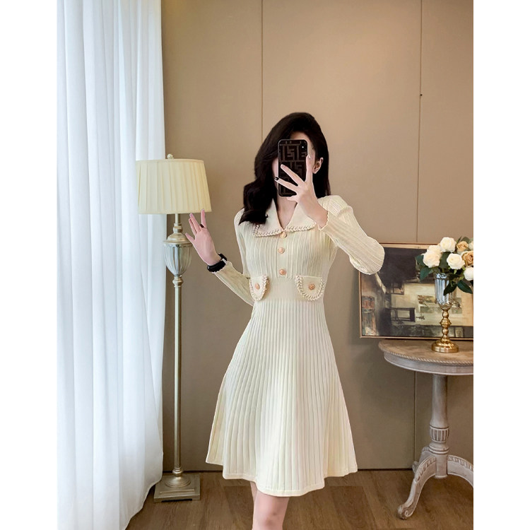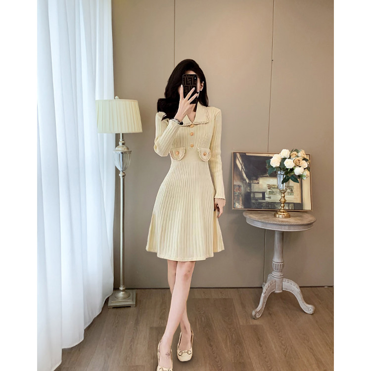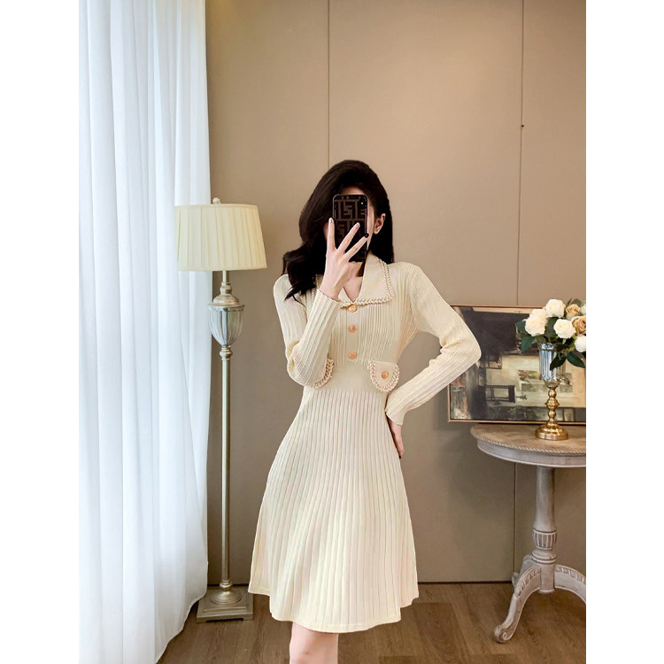法式小香风长袖针织连衣裙女春秋冬收腰修身气质小个子打底毛衣裙
