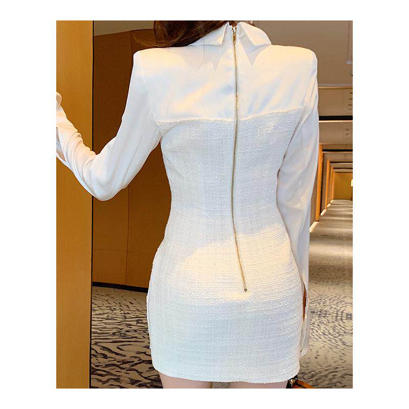 小香风连衣裙女秋季小个子穿搭高级感法式气质长袖包臀白色短裙子