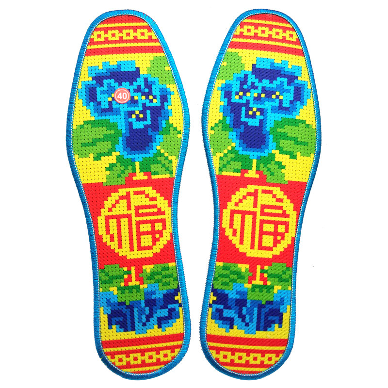 新款印花大针孔纯棉布十字绣鞋垫湘妹子中格满绣边吸汗防臭不掉色