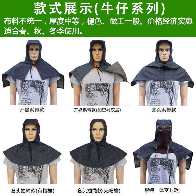 防尘头套防尘帽女款防尘披肩风帽牛仔布男女装修施工搬运装卸打磨