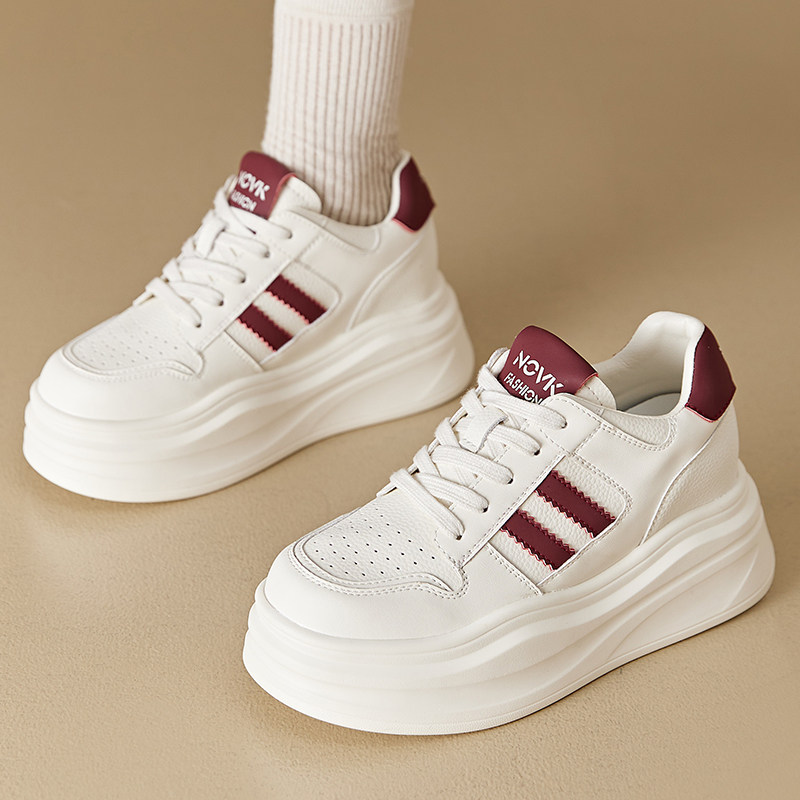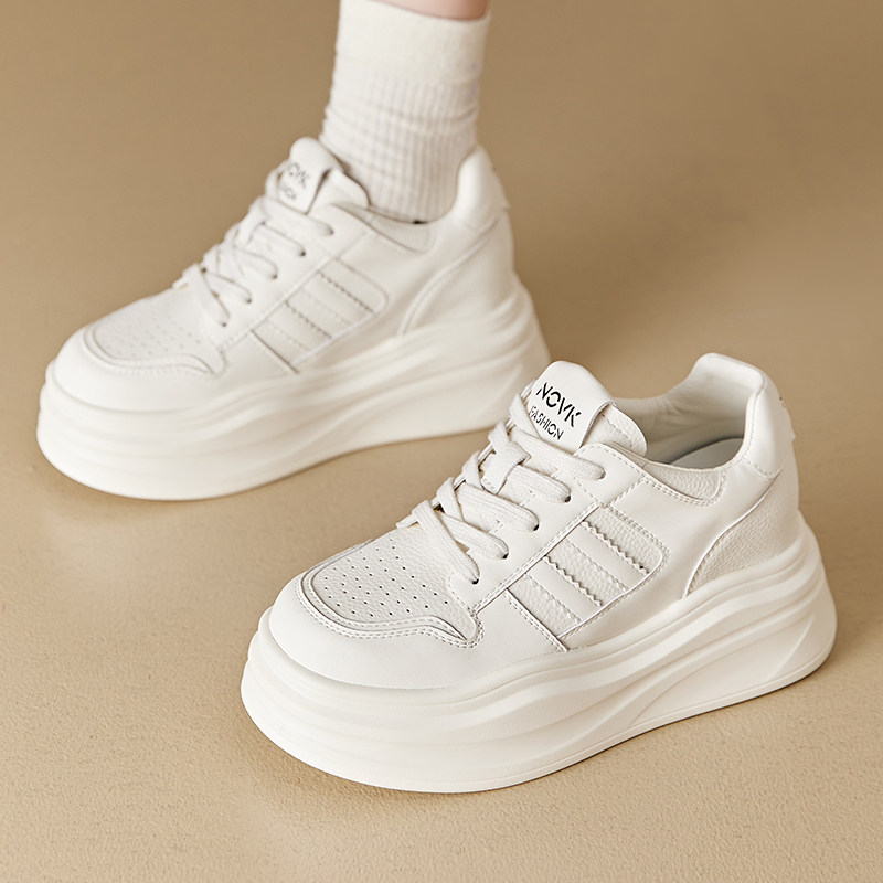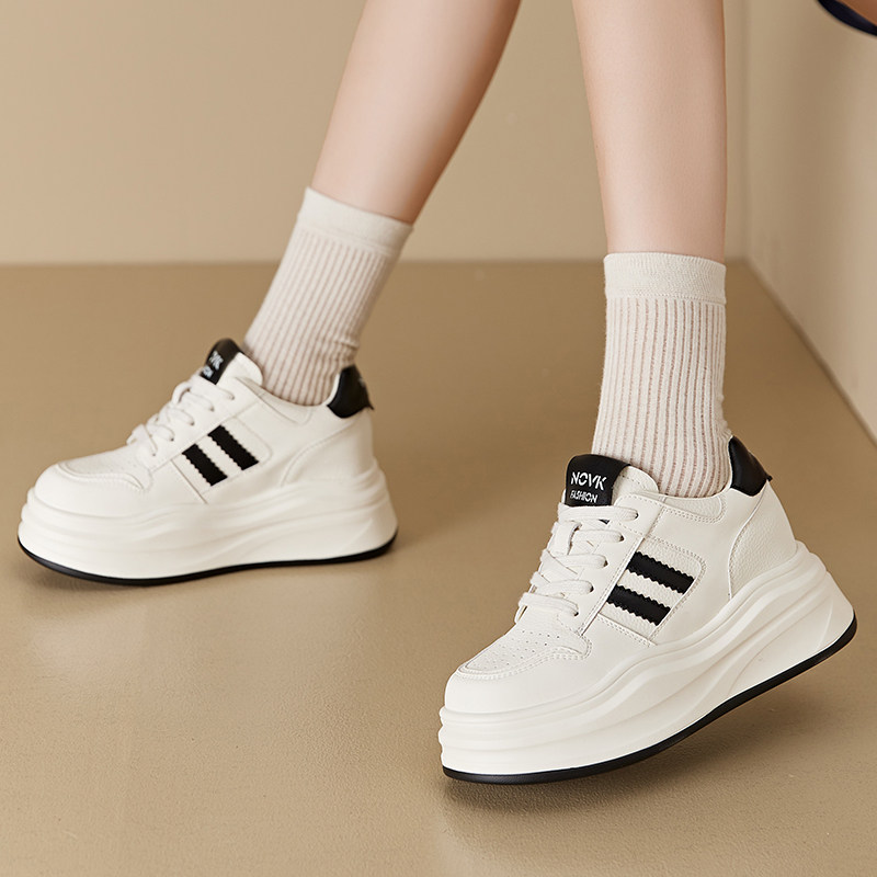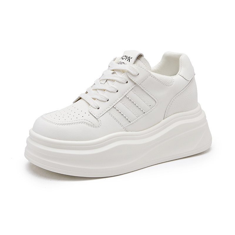 真皮爆款内增高小白鞋女8cm秋季轻便百搭厚底运动休闲单鞋松糕鞋