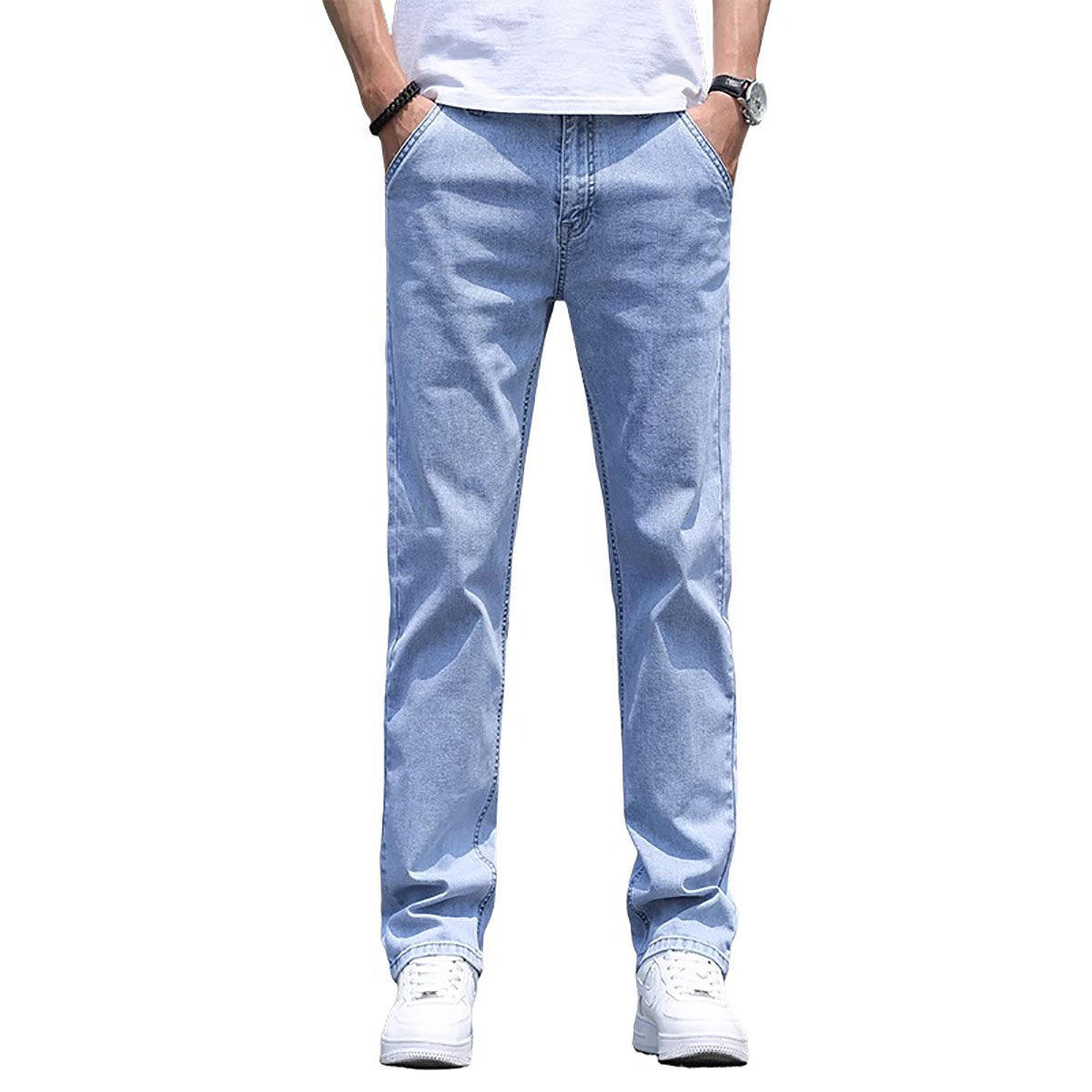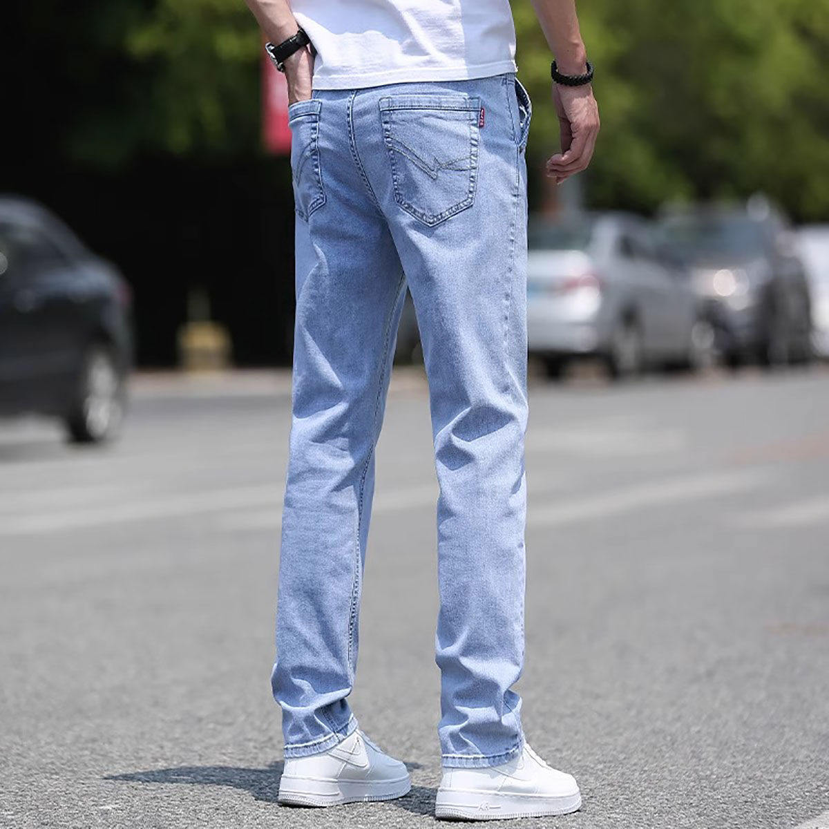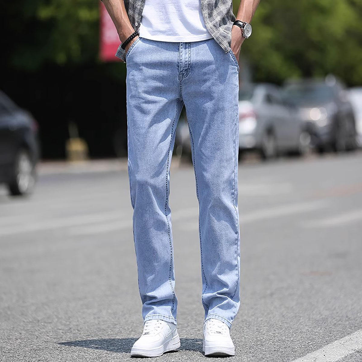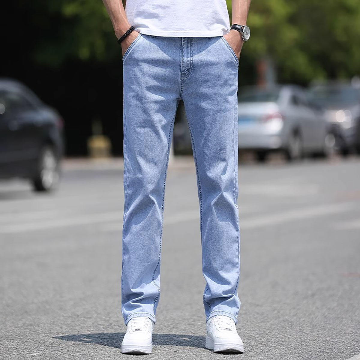 香港2026春夏季新款牛仔裤男士宽松弹力直筒潮流浅蓝色休闲长裤子