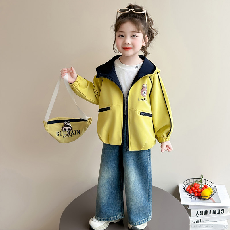 女童春装冲锋衣外套2026新款儿童薄款夹克衫连帽开衫洋气春秋衣服