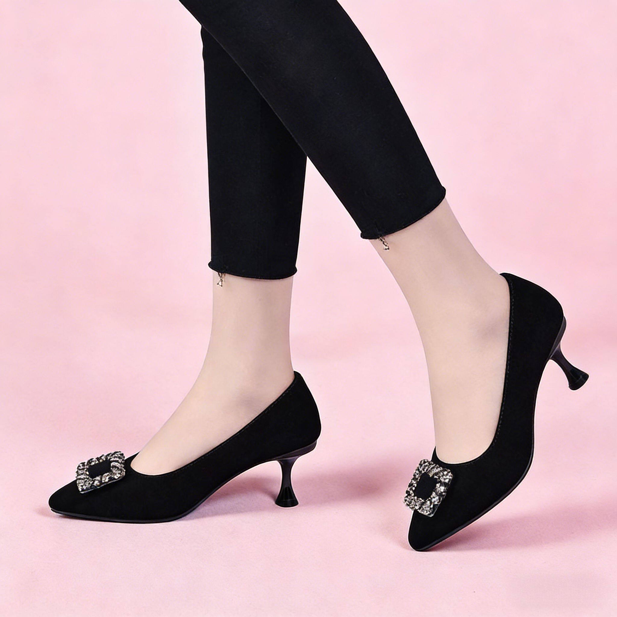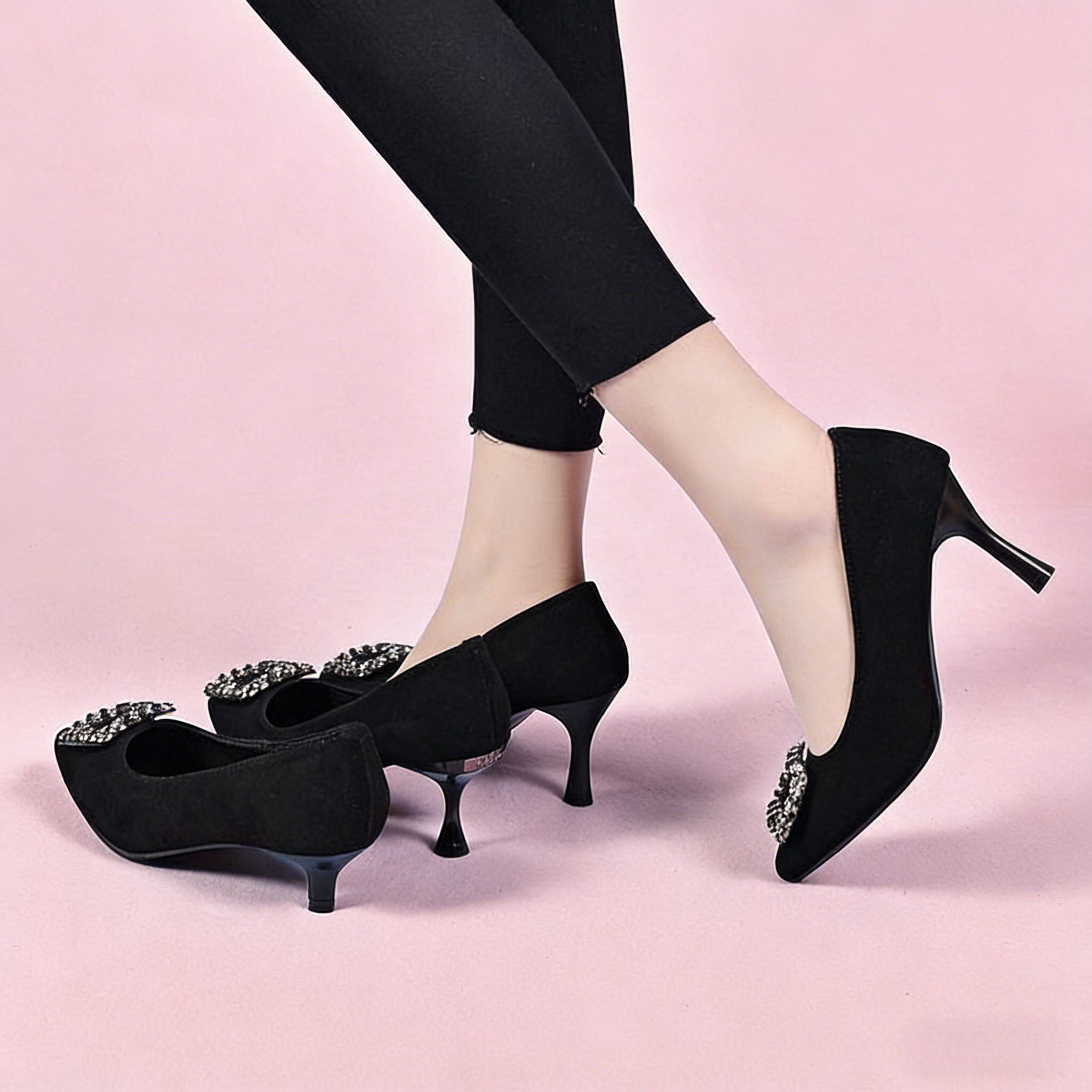 2026新款真皮工作鞋女细跟浅口单鞋时尚洋气高跟鞋3-5-7厘米皮鞋