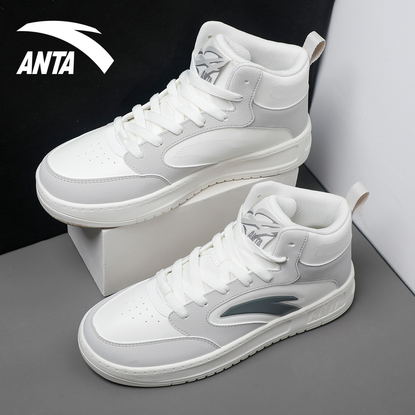 安踏高帮男鞋春秋季新款鞋子男青少年运动休闲鞋中邦厚底增高板鞋