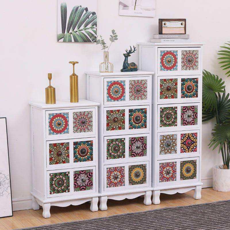 美式实木斗柜抽屉式收纳柜田园储物柜阳台多层置物柜卧室彩绘柜子