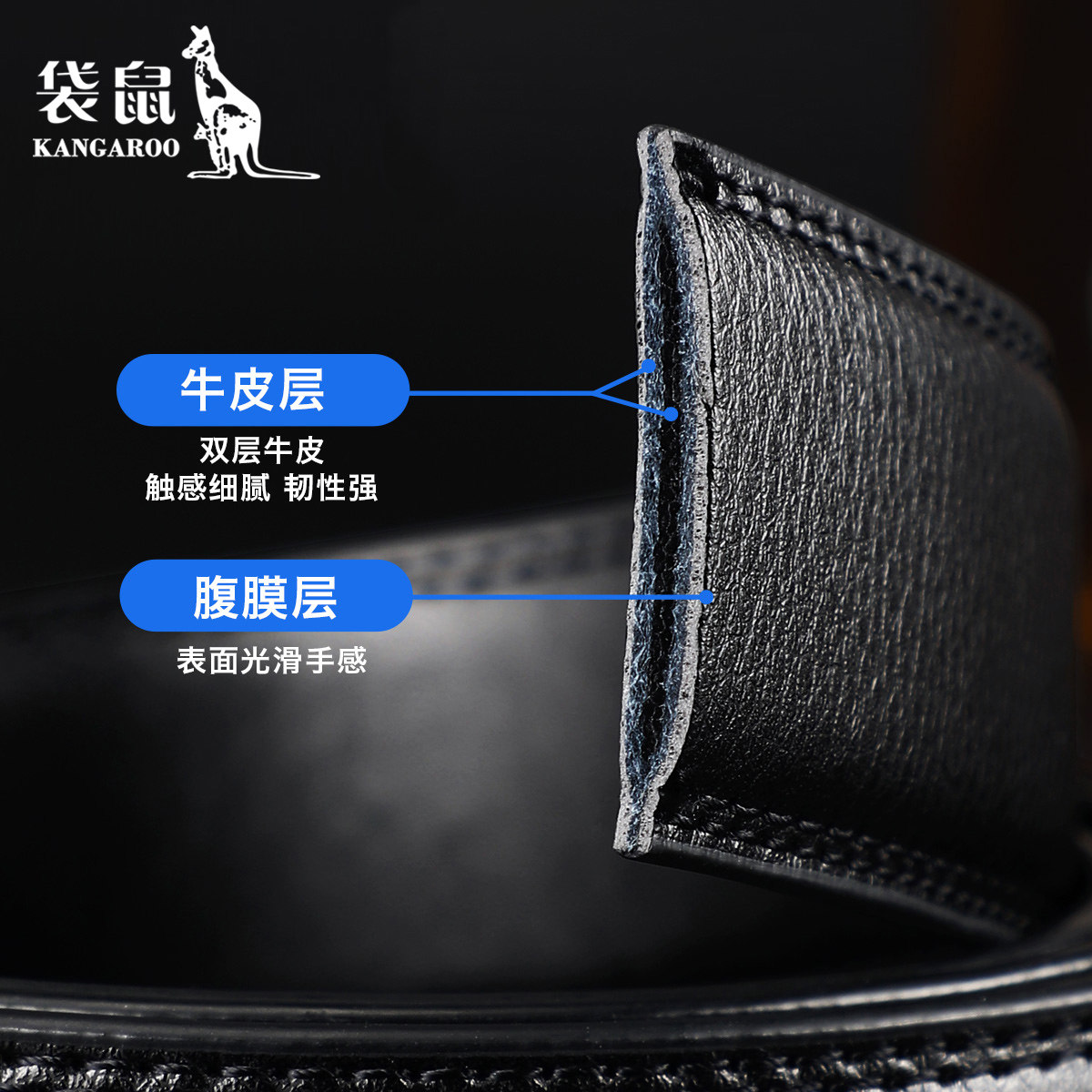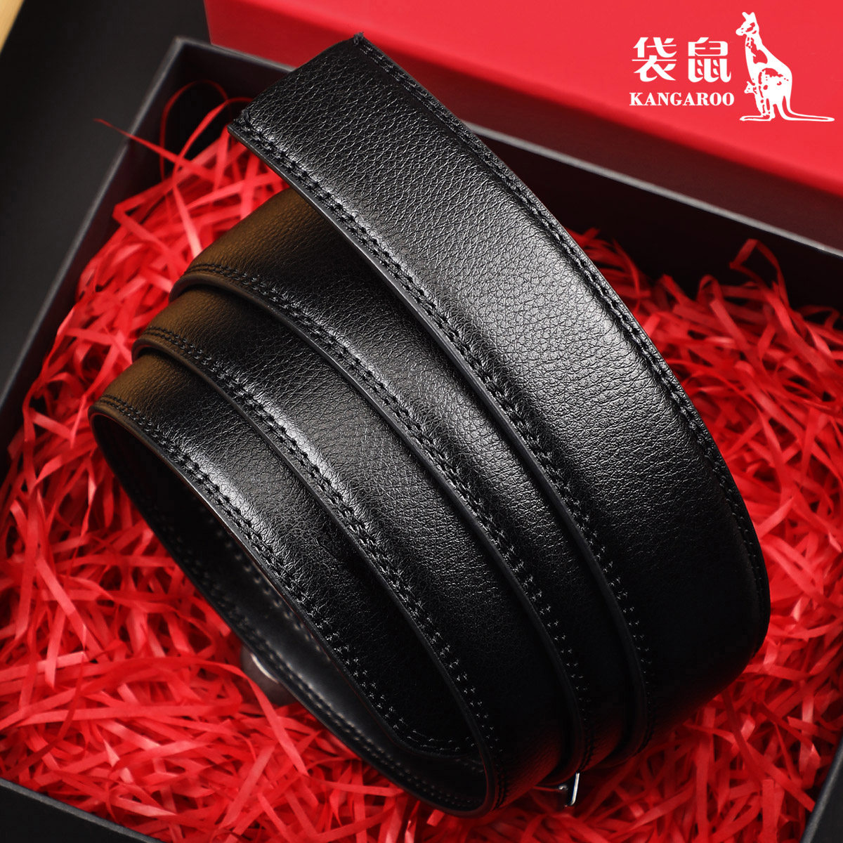 袋鼠2026新款男士皮带条不带头真皮带身无头纯自动扣牛皮裤腰带
