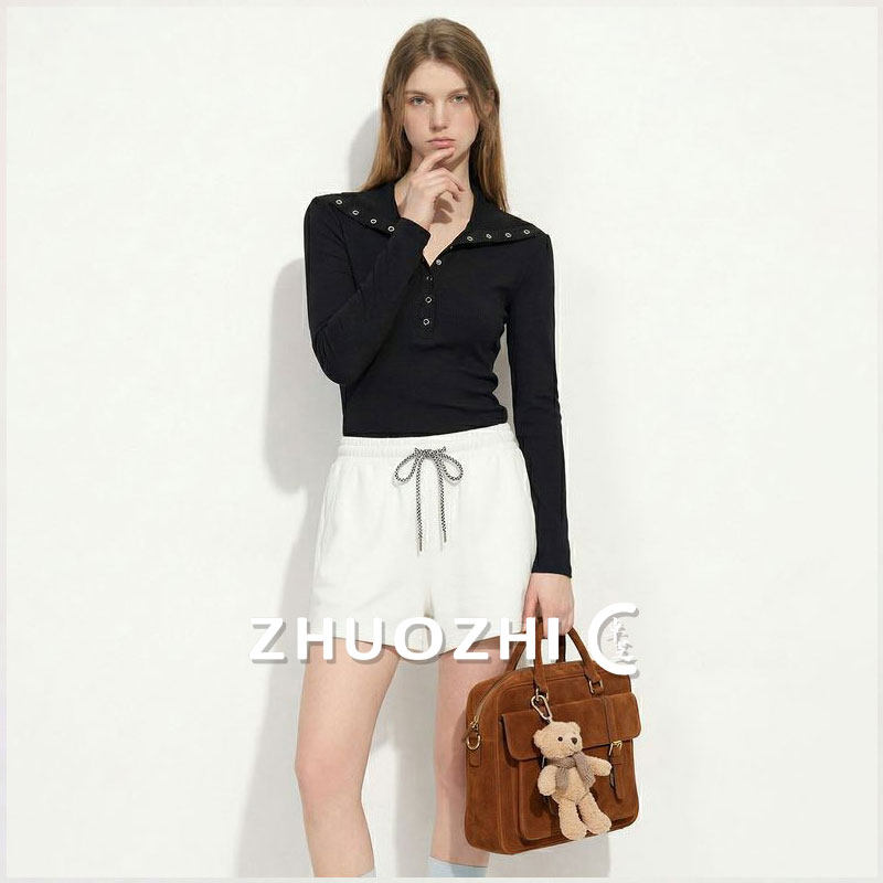 【爆款】法式半开领多纽扣针织衫2026夏季新款黑色修身高级感上衣