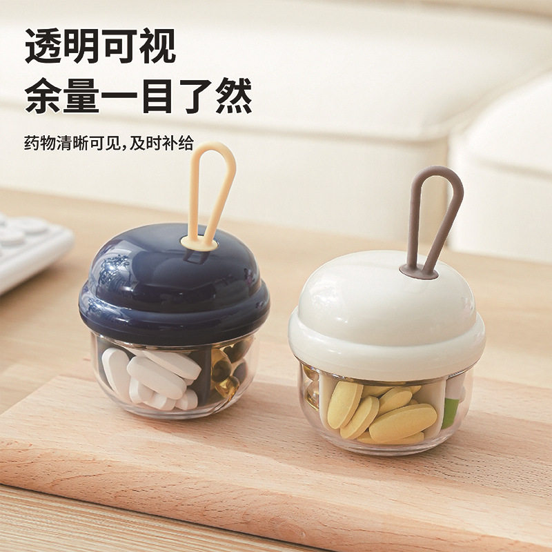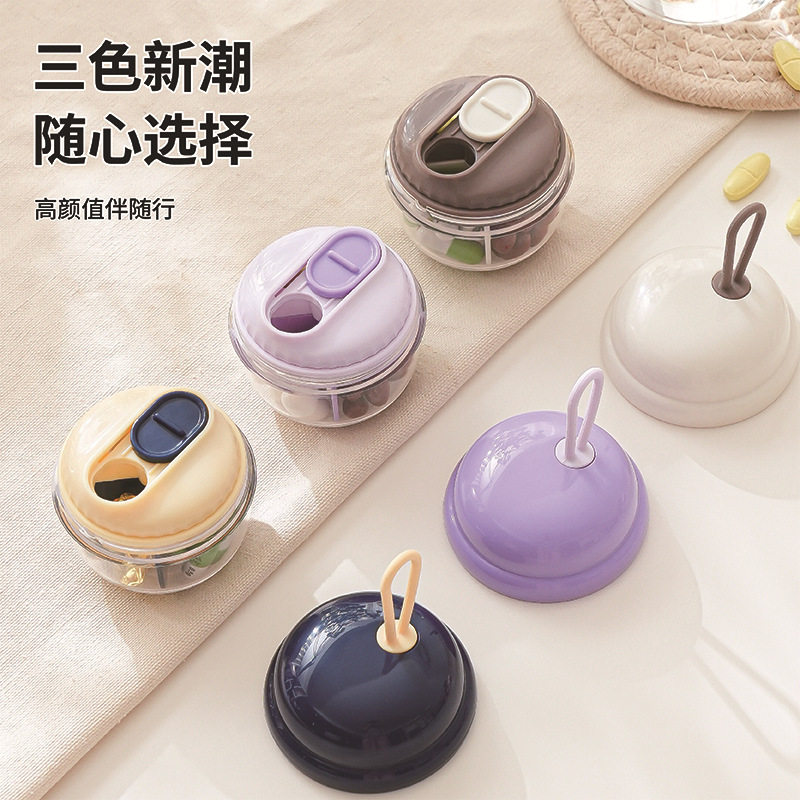 便携式旋转出药无接触圆形药盒创意分装小药盒户外旅行药片收纳盒