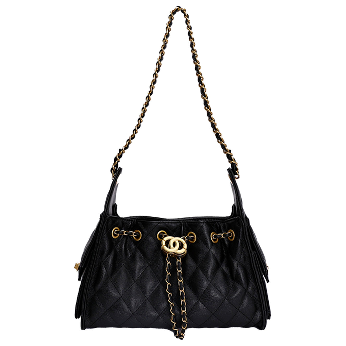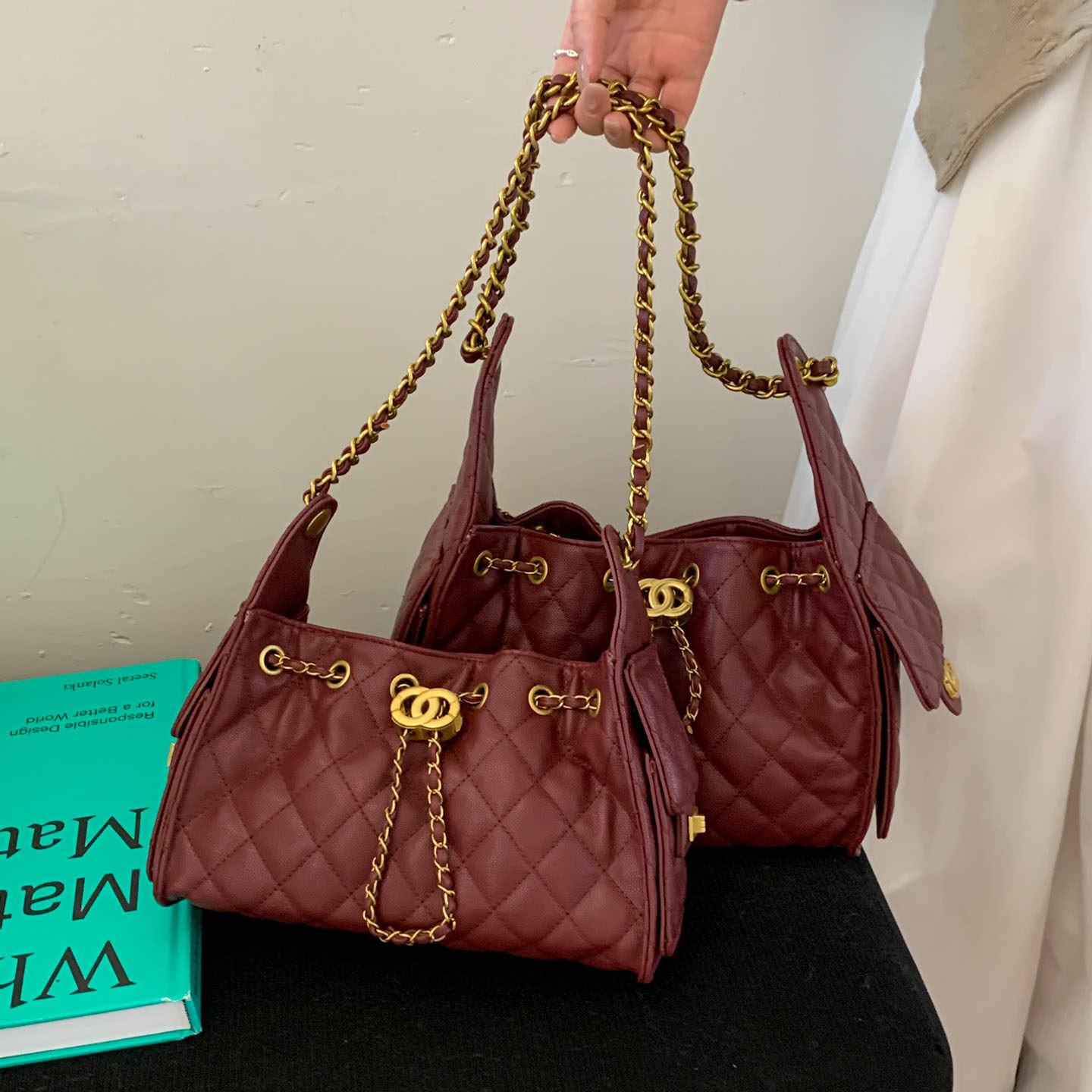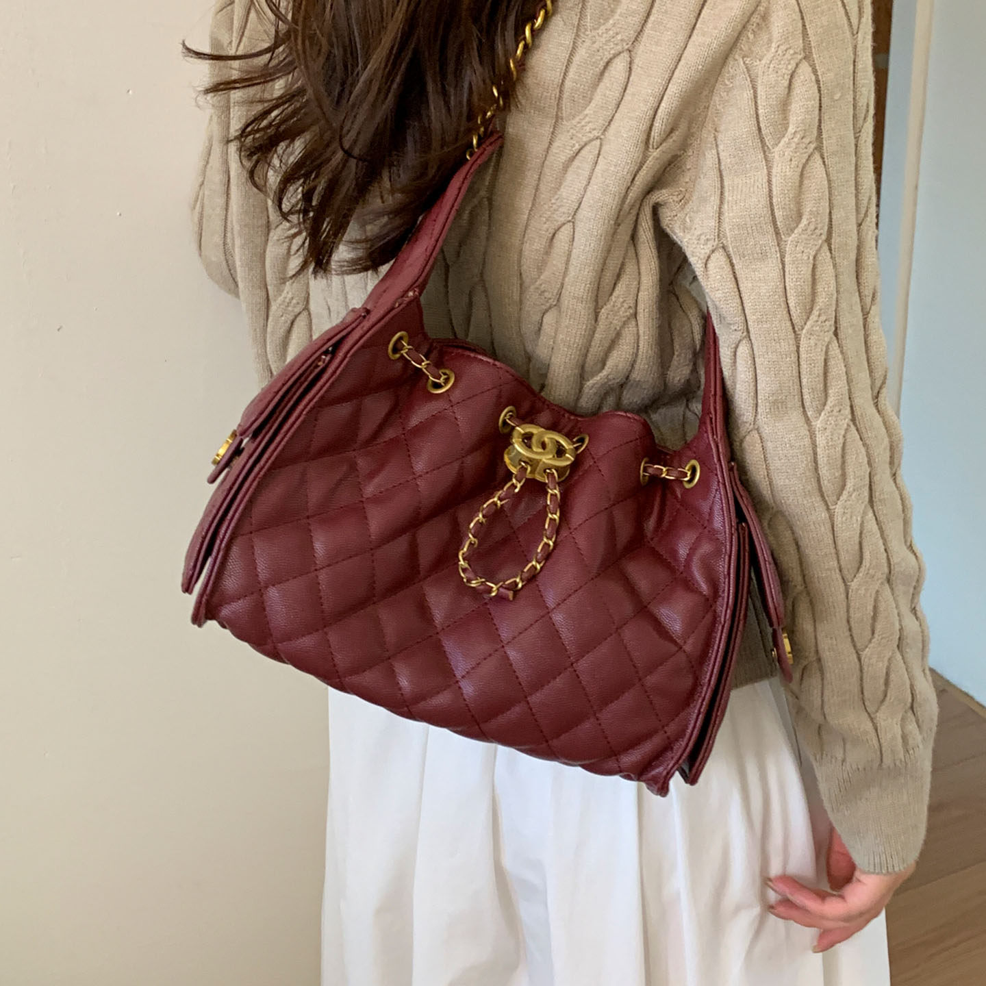 高级感菱格链条单肩包2025大容量女通勤气质休闲抽带秋季斜挎包