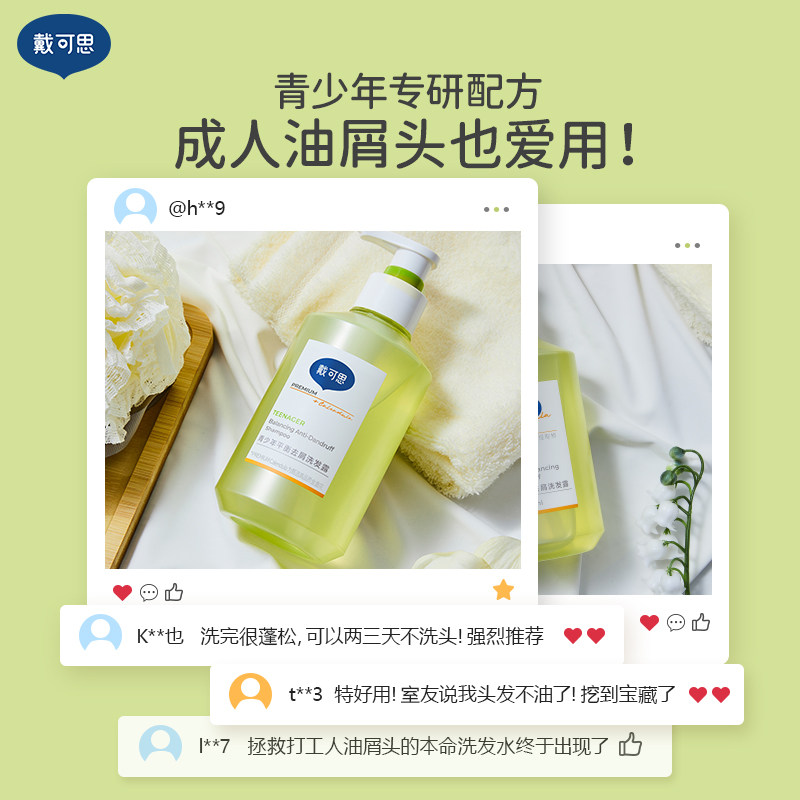 戴可思青少年洗发水去屑控油蓬松男孩女孩学生专用洗发露