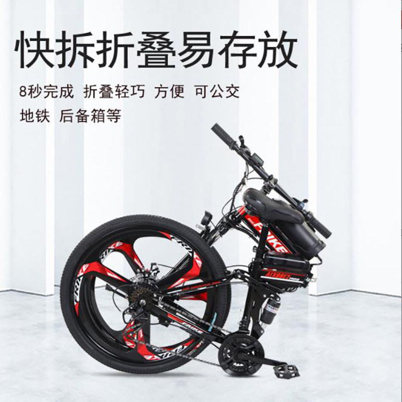 26寸折叠锂电山地车电动自行车助力一体轮双减震变速车