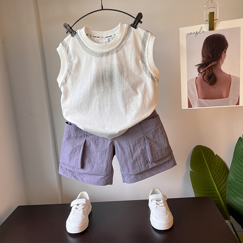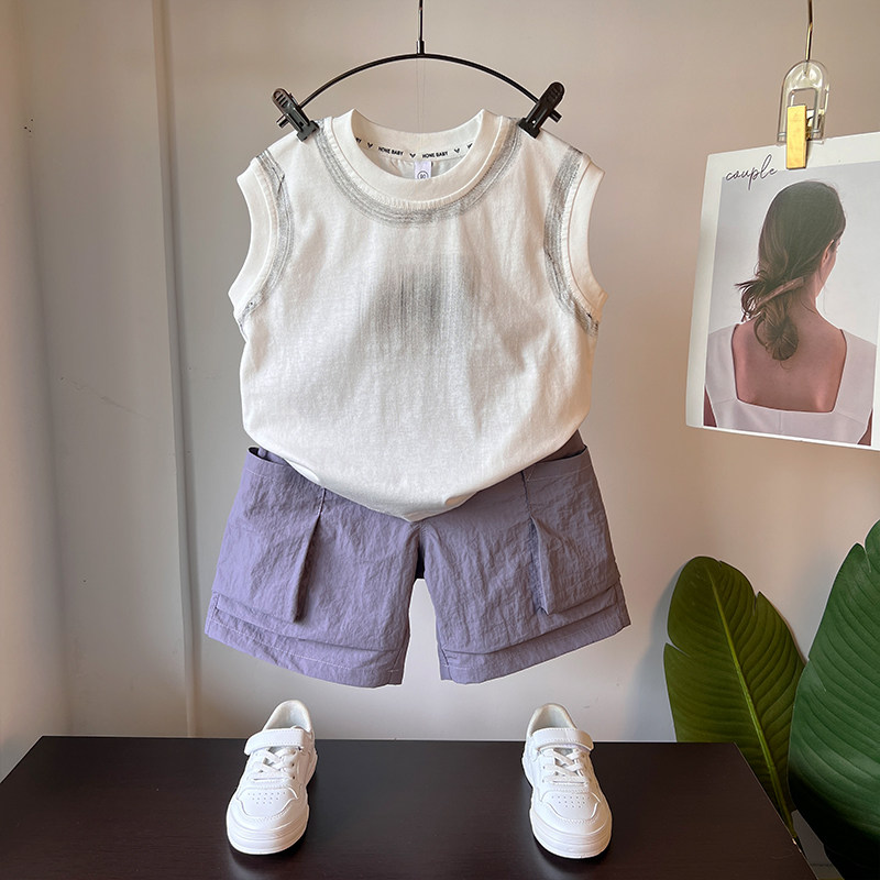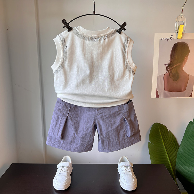 男童背心套装夏2025新款男孩酷帅坎肩小童夏装无袖儿童工装裤衣服