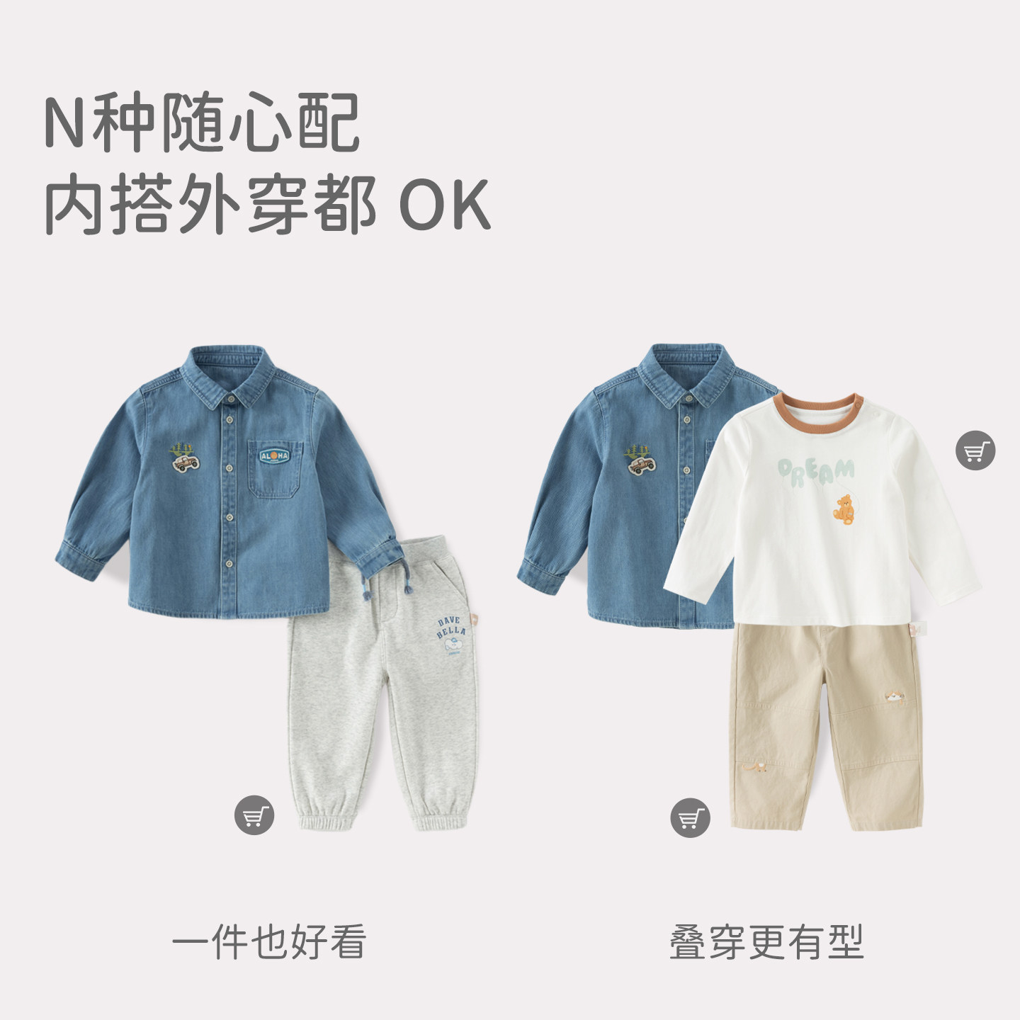 戴维贝拉男童牛仔衬衫2026春装新款宝宝纯棉衬衣儿童洋气外套童装