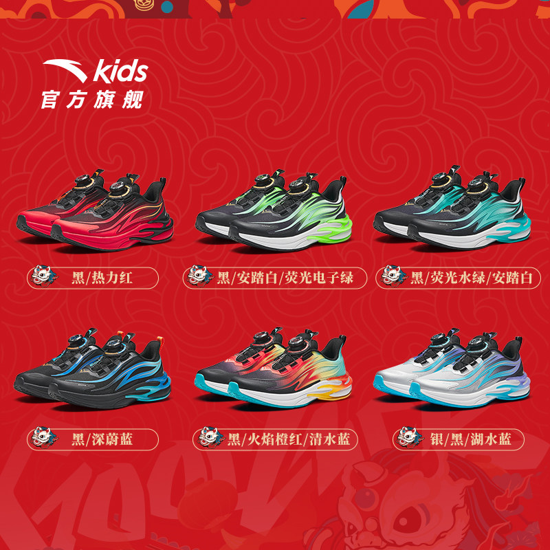 安踏儿童鞋男童运动鞋火焰跑鞋2025秋冬款男童鞋子专业跑鞋纽扣鞋