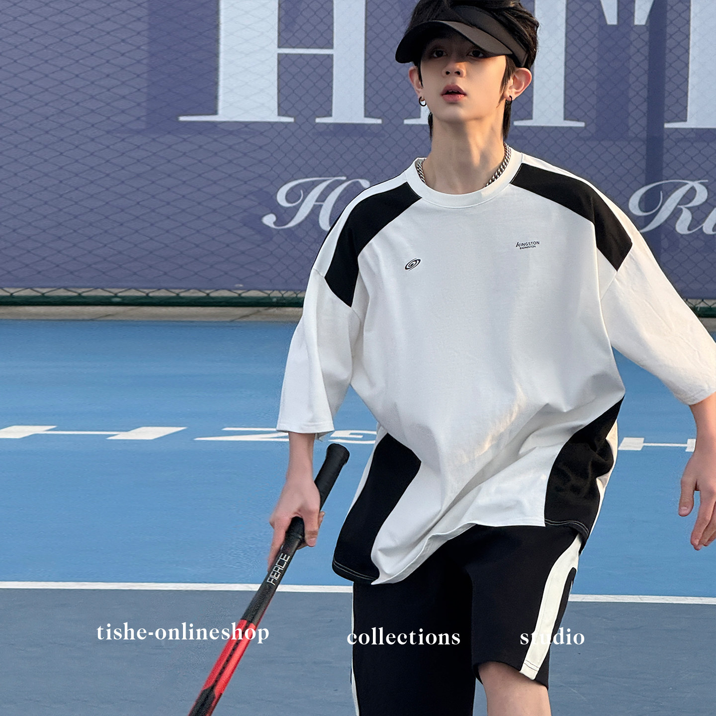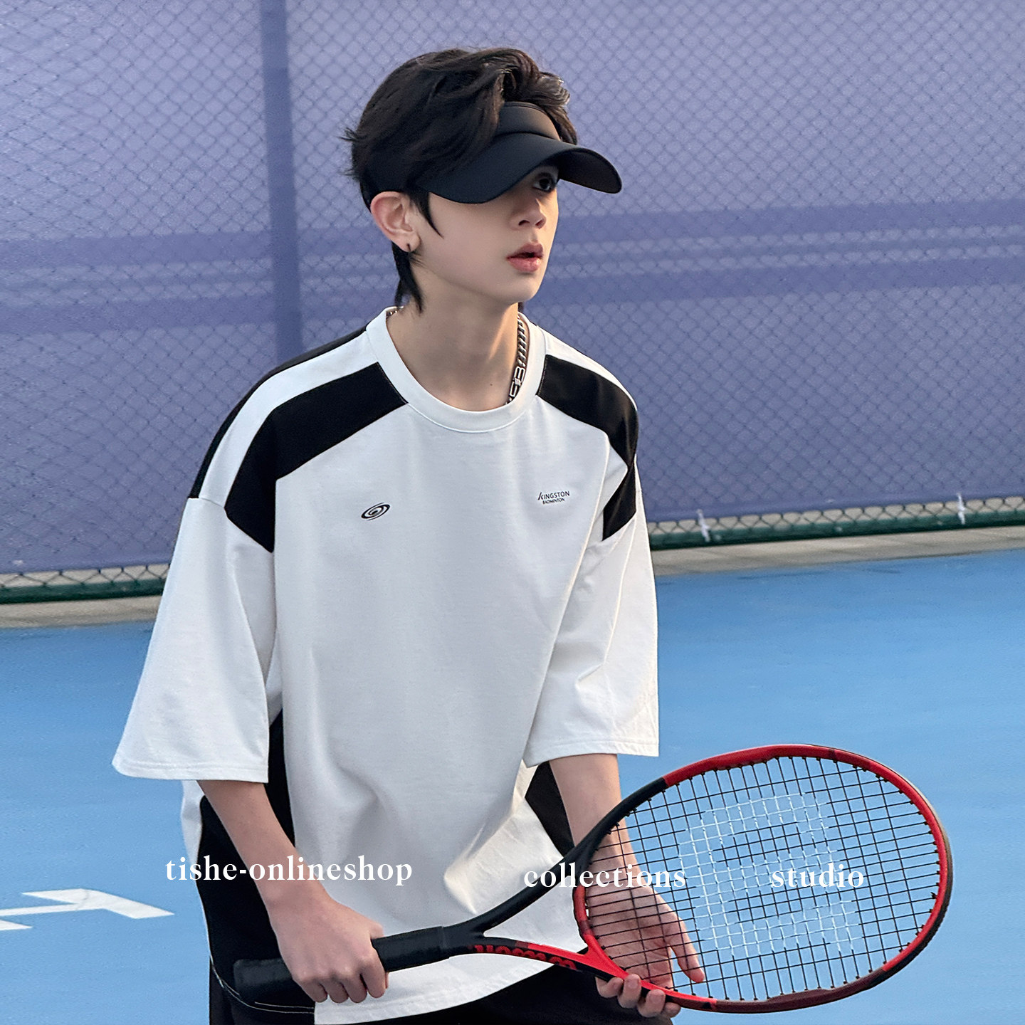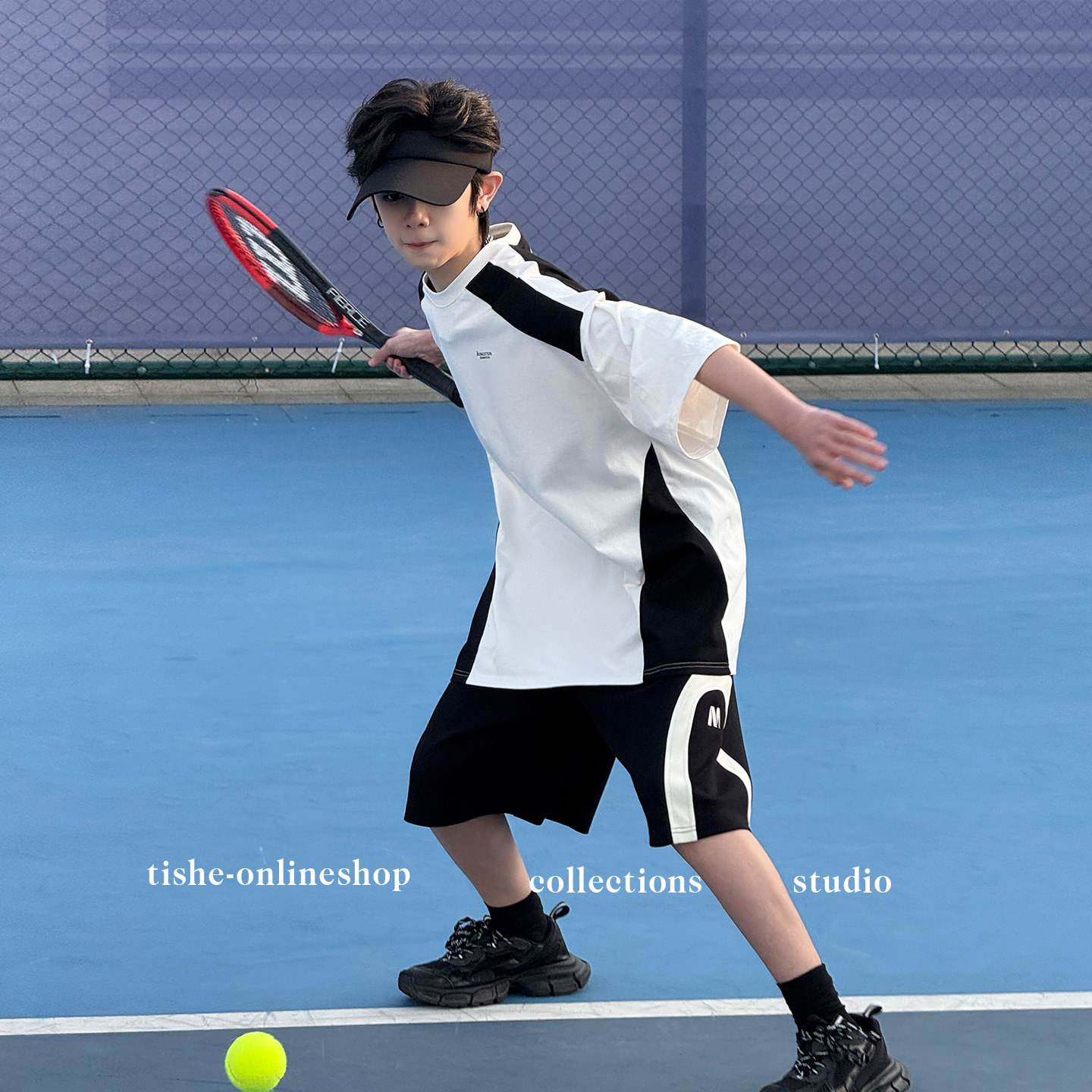 男童夏季短袖t恤2026新款宽松纯棉上衣青少年夏装运动网球服潮牌T