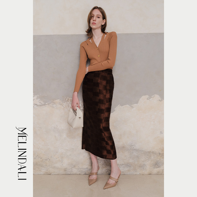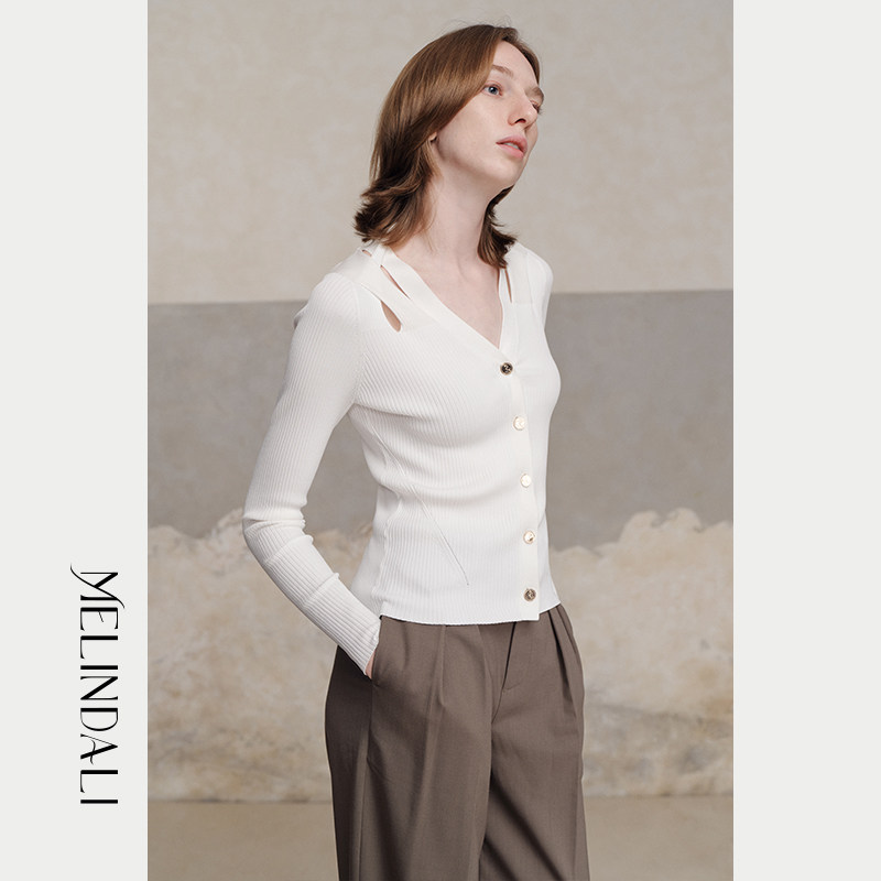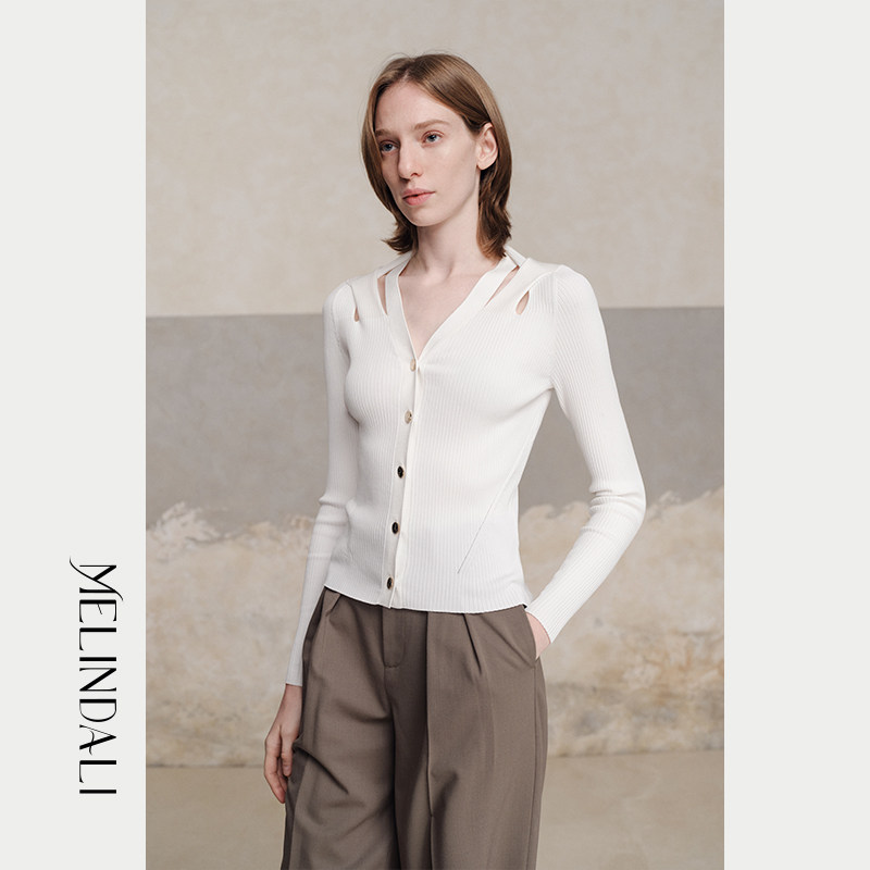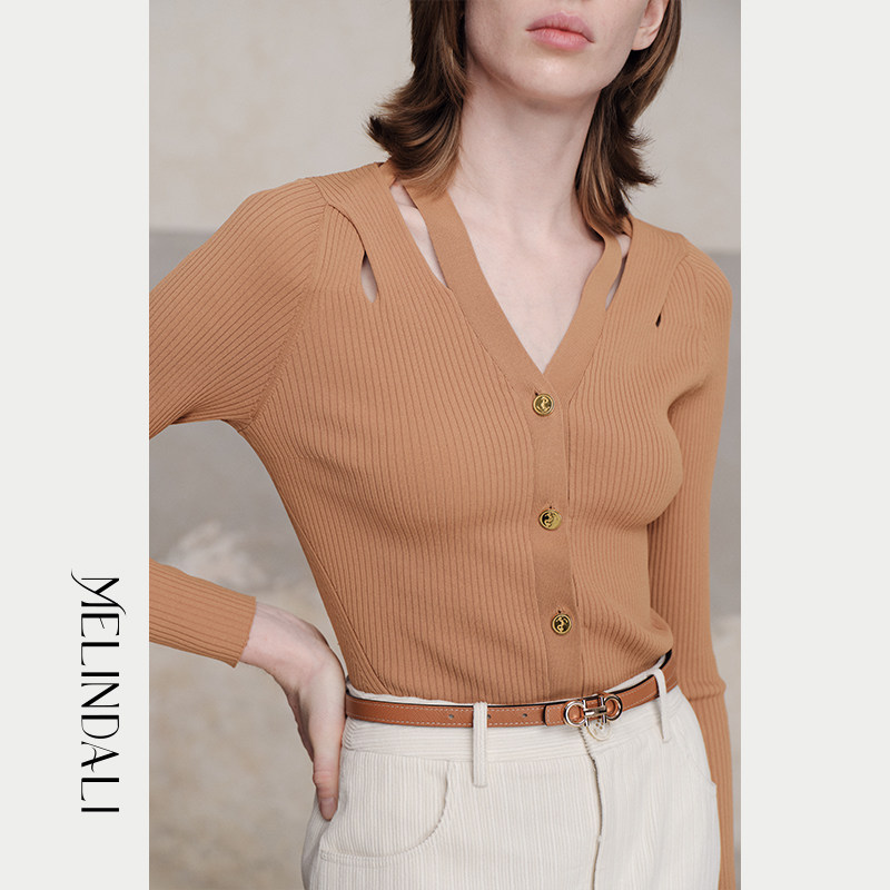 MelindaLi【流淌】秋季新款毛衣开衫女高级感V领修身显瘦上衣