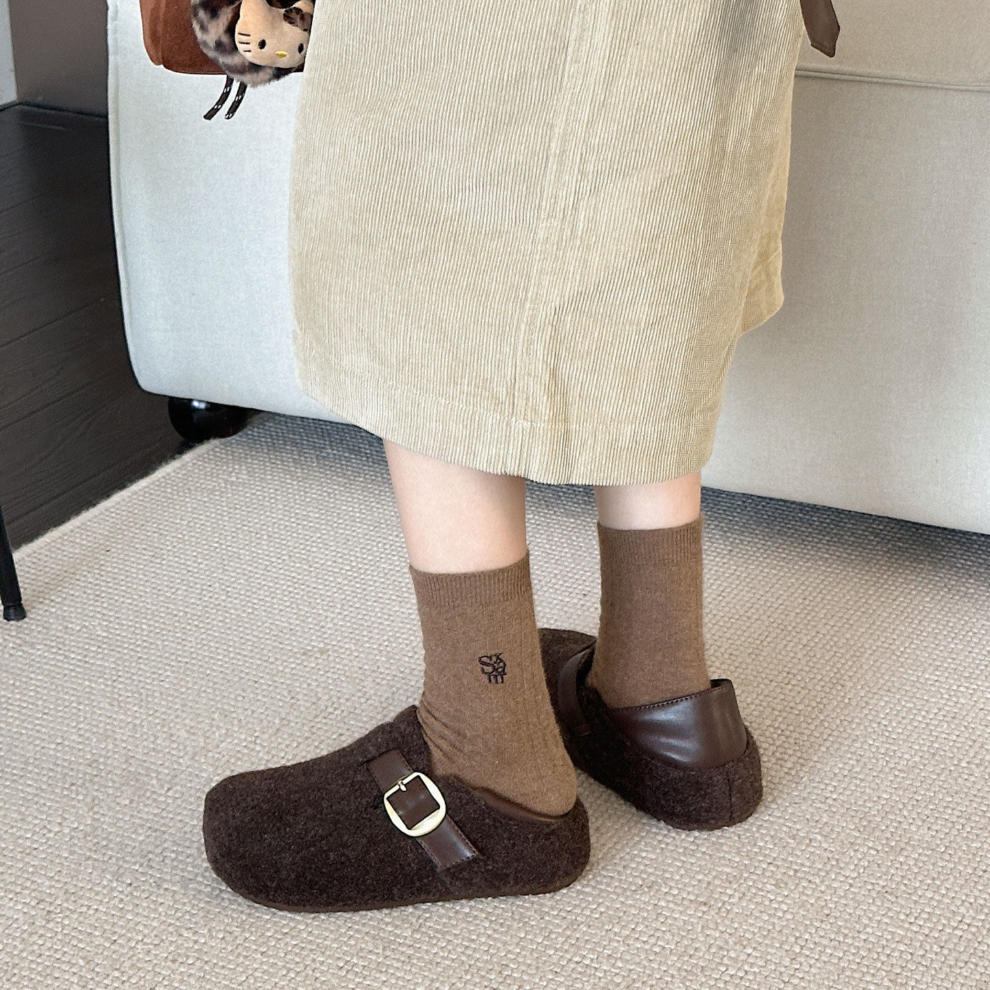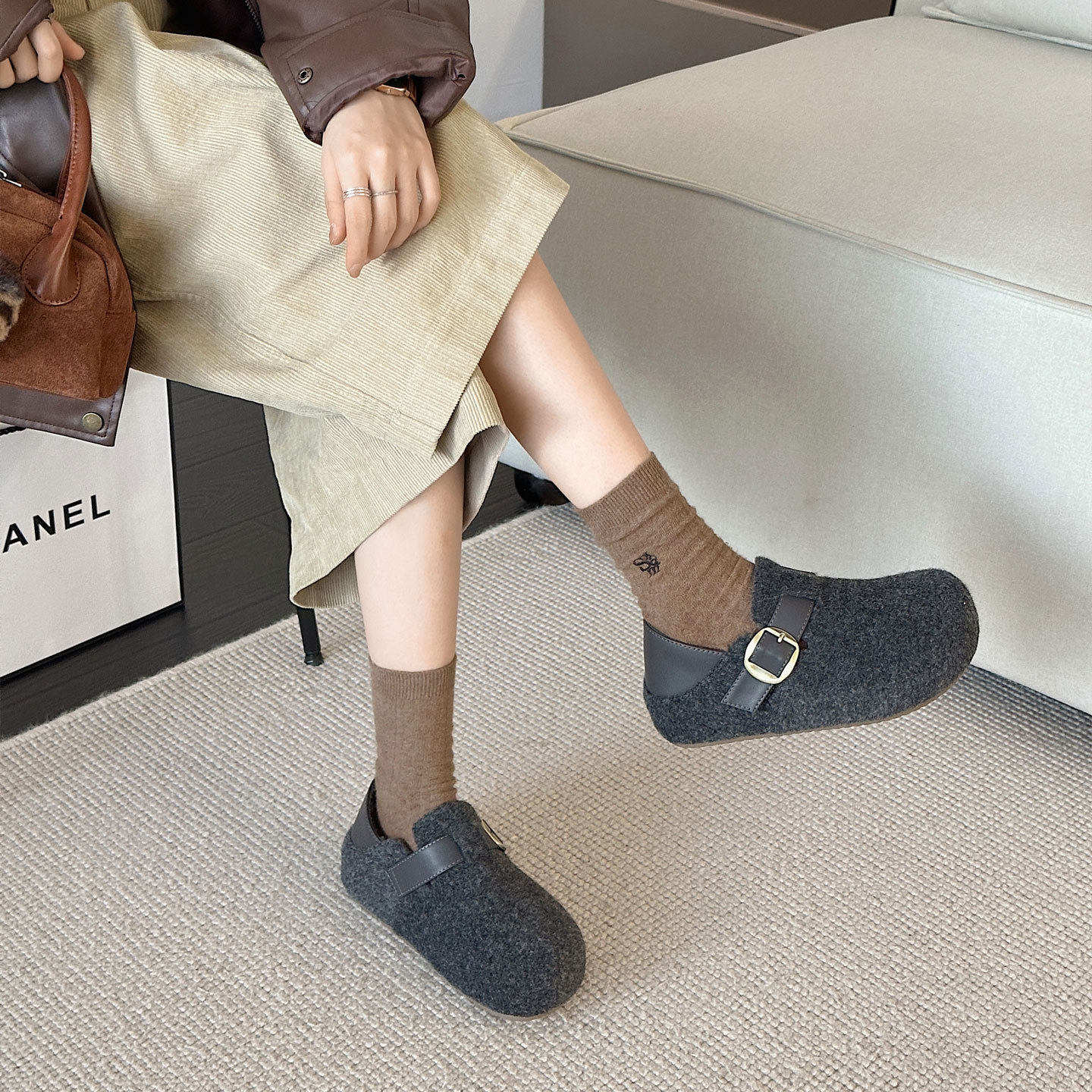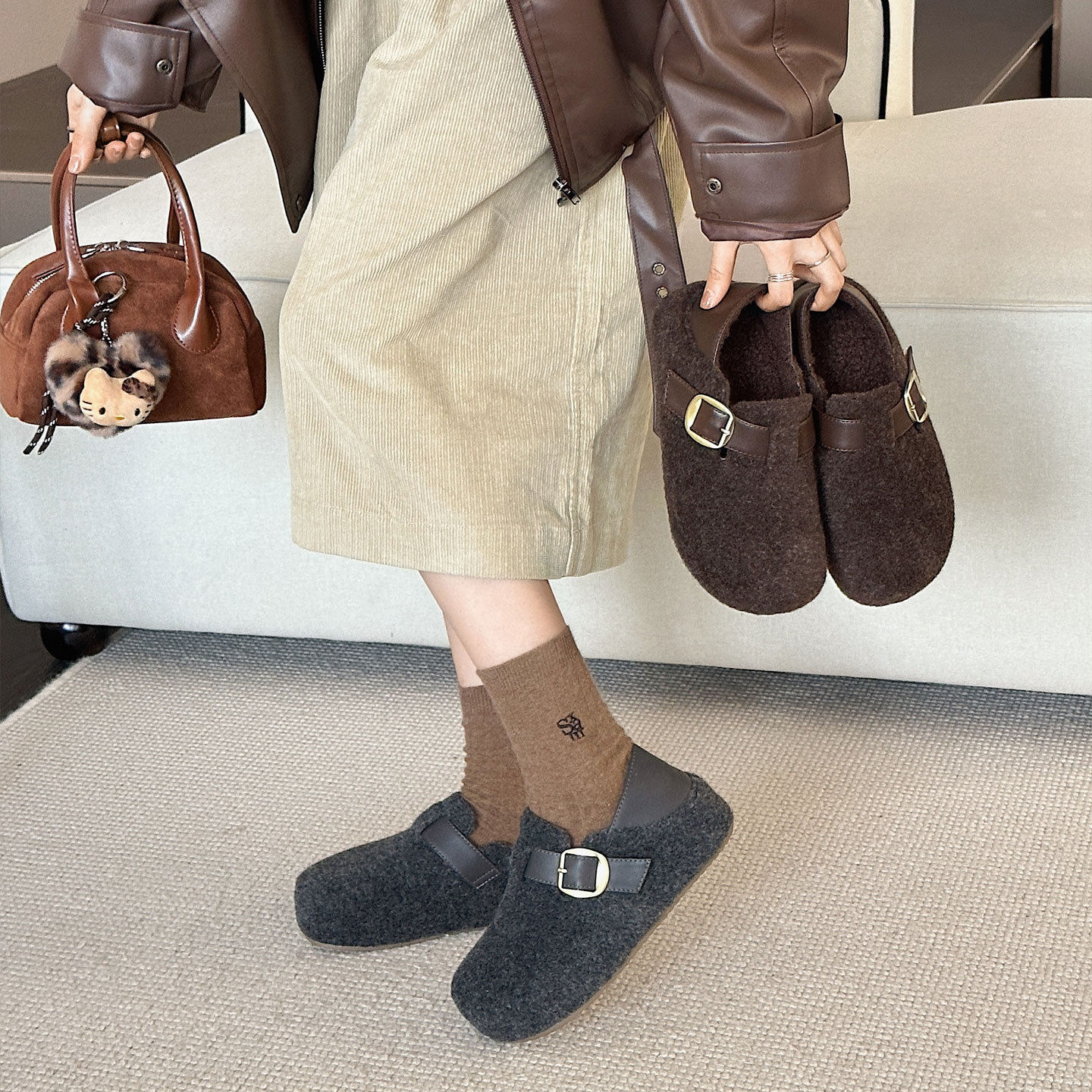 毛绒勃肯鞋女款加绒厚底内增高2025冬季新款全包超火灰色勃肯女鞋