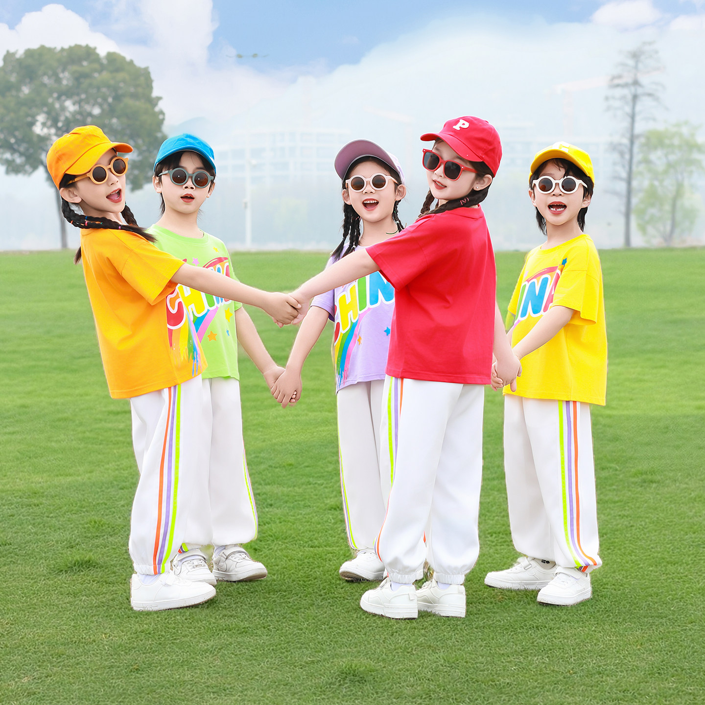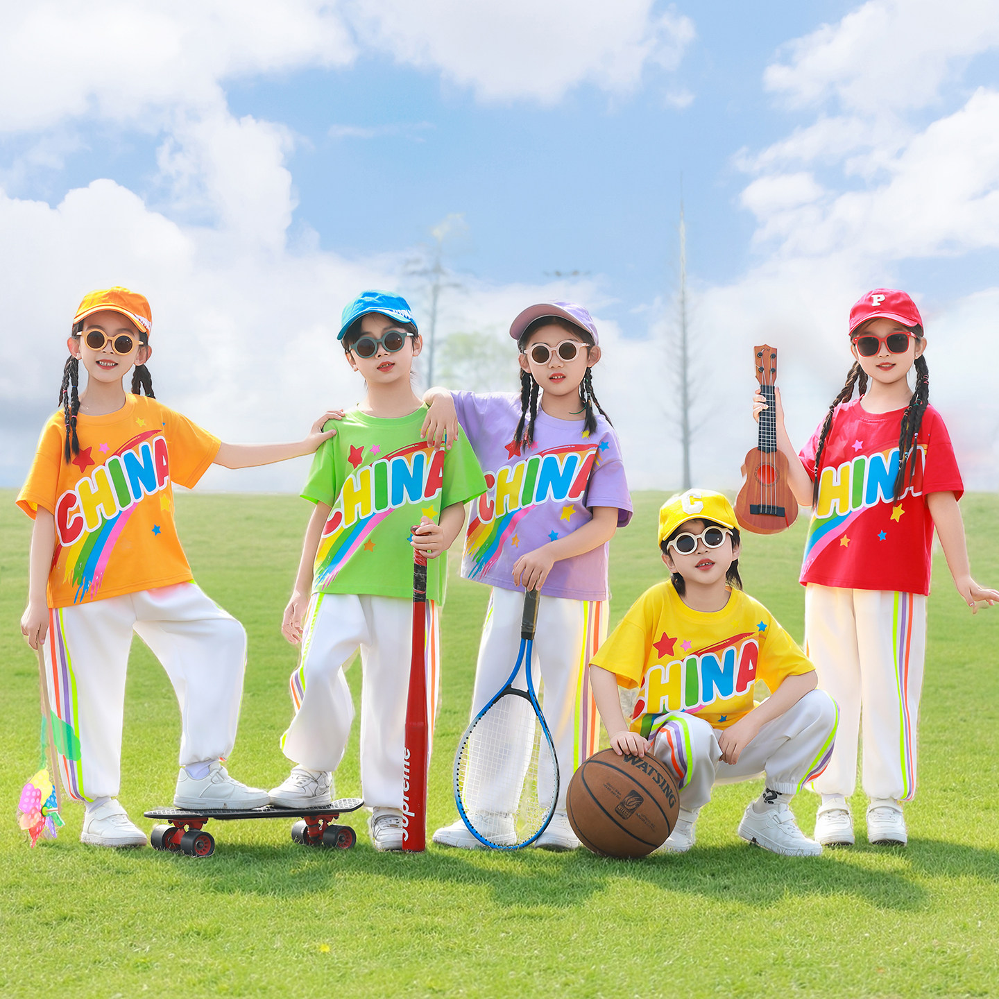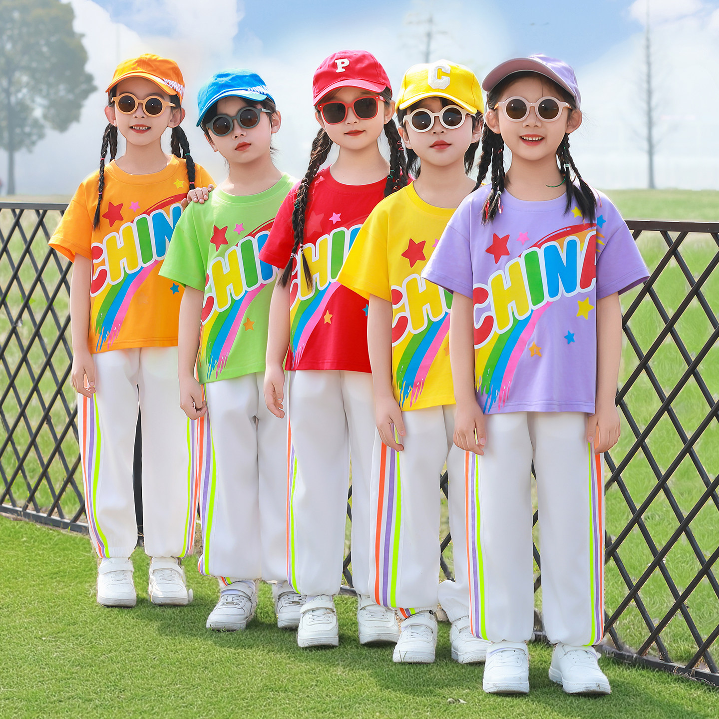 儿童夏季短袖长裤套装男女童六一运动表演服小学生幼儿园团购班服