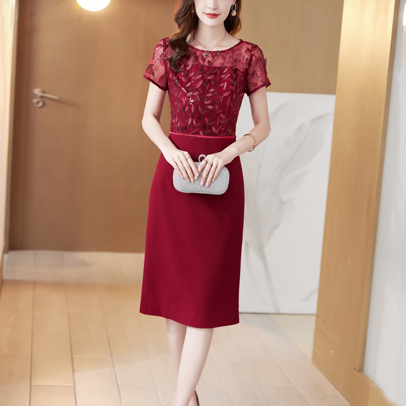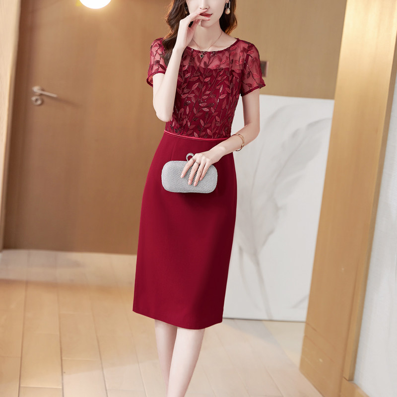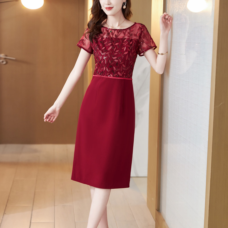 酒红色蕾丝旗袍女长袖2025春夏新款婚礼宴会礼服高级感包臀连衣裙