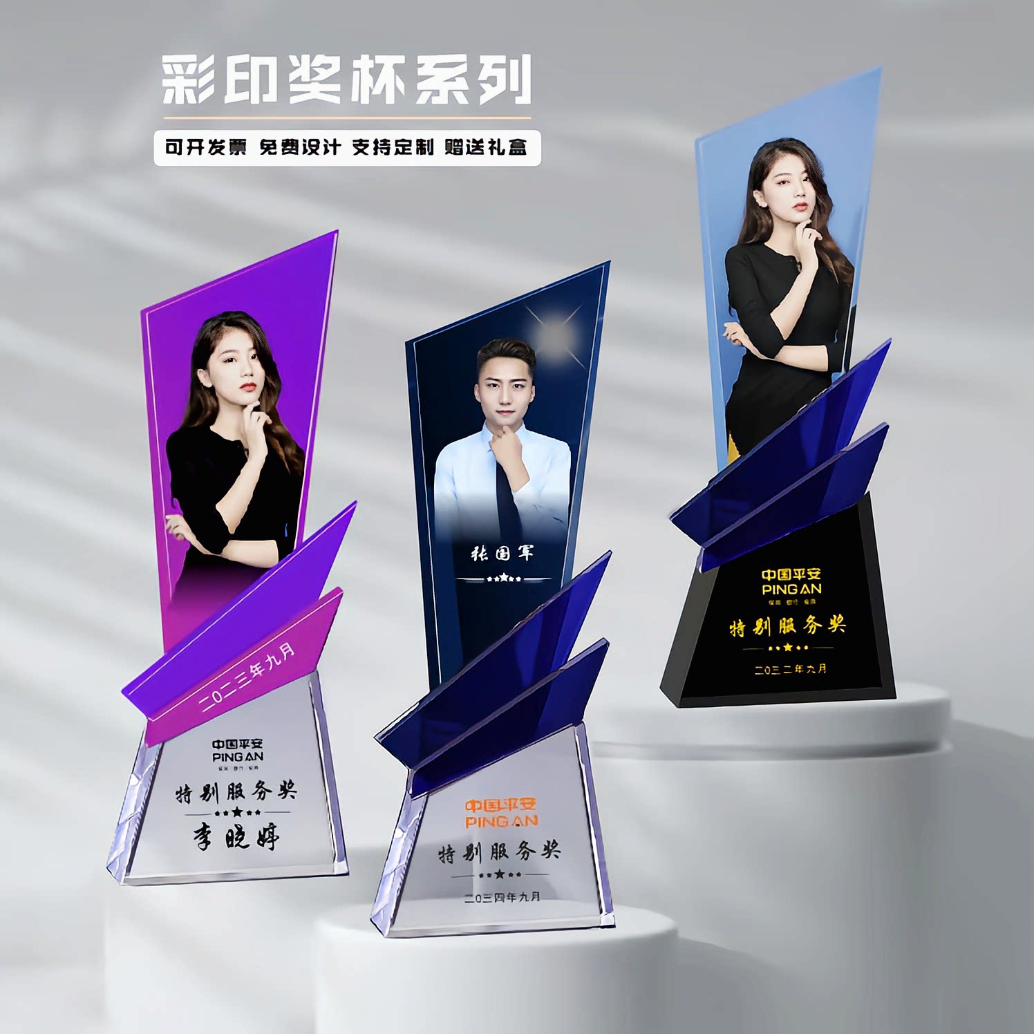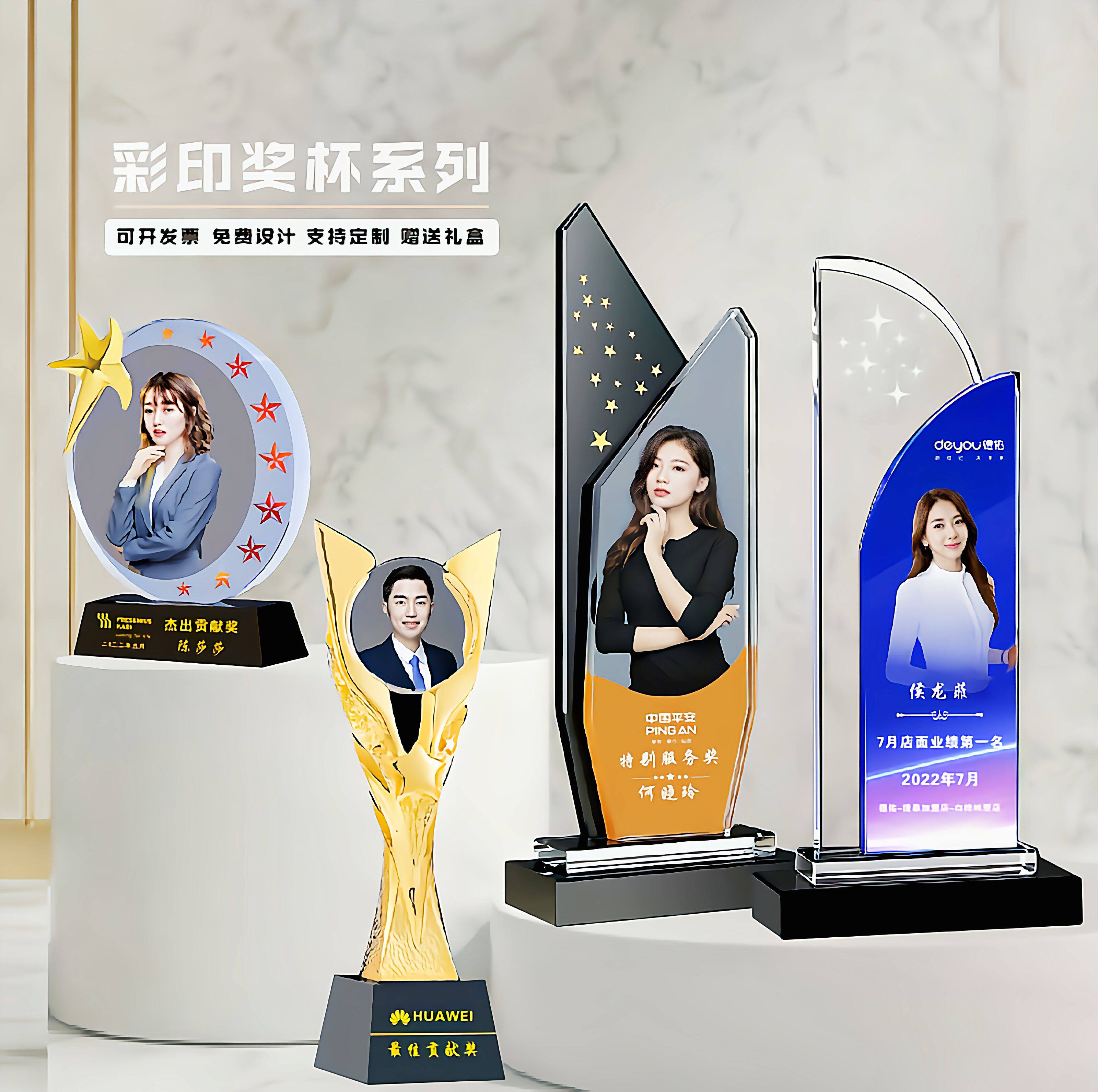 照片奖杯定制团队冠军水晶年会奖牌员工颁创意新款彩印带相片奖牌