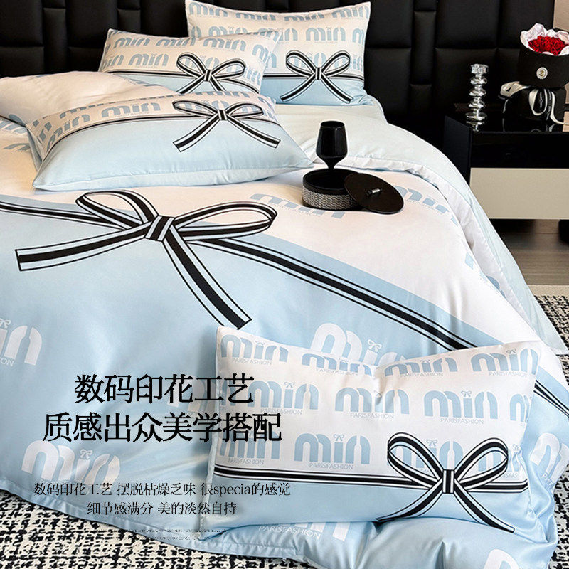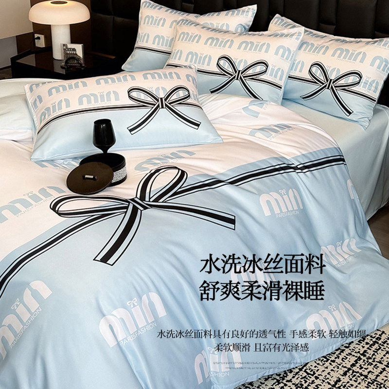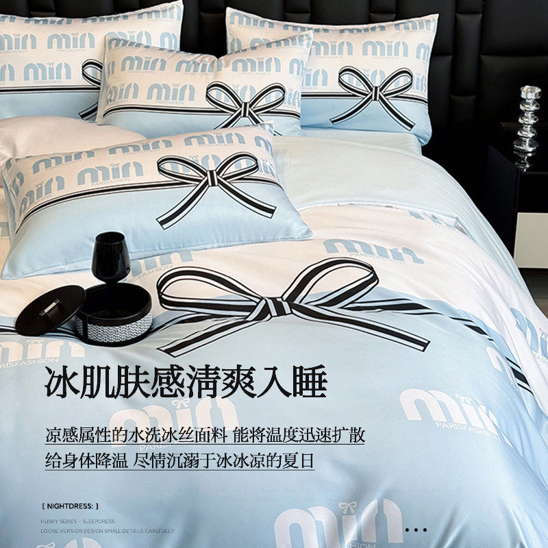轻奢冰丝床上四件套夏季真丝滑裸睡被套床单床笠款高级感床品夏天