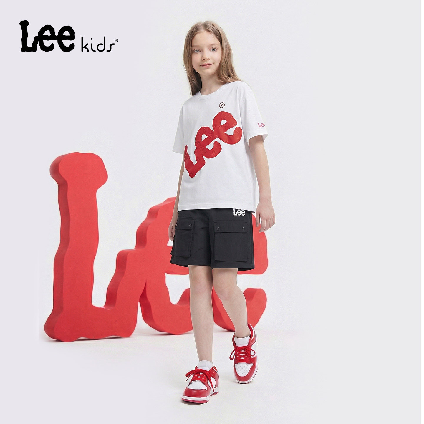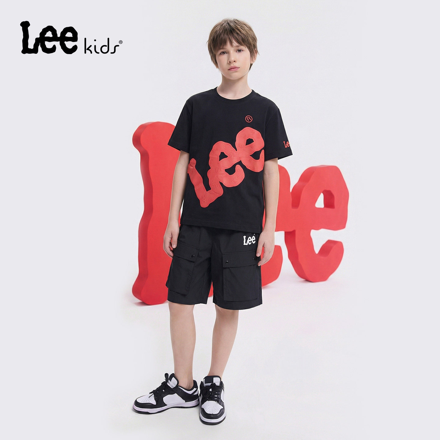 Leekids男女童T恤套装夏季百搭男女孩中大童上衣运动速干衣短袖