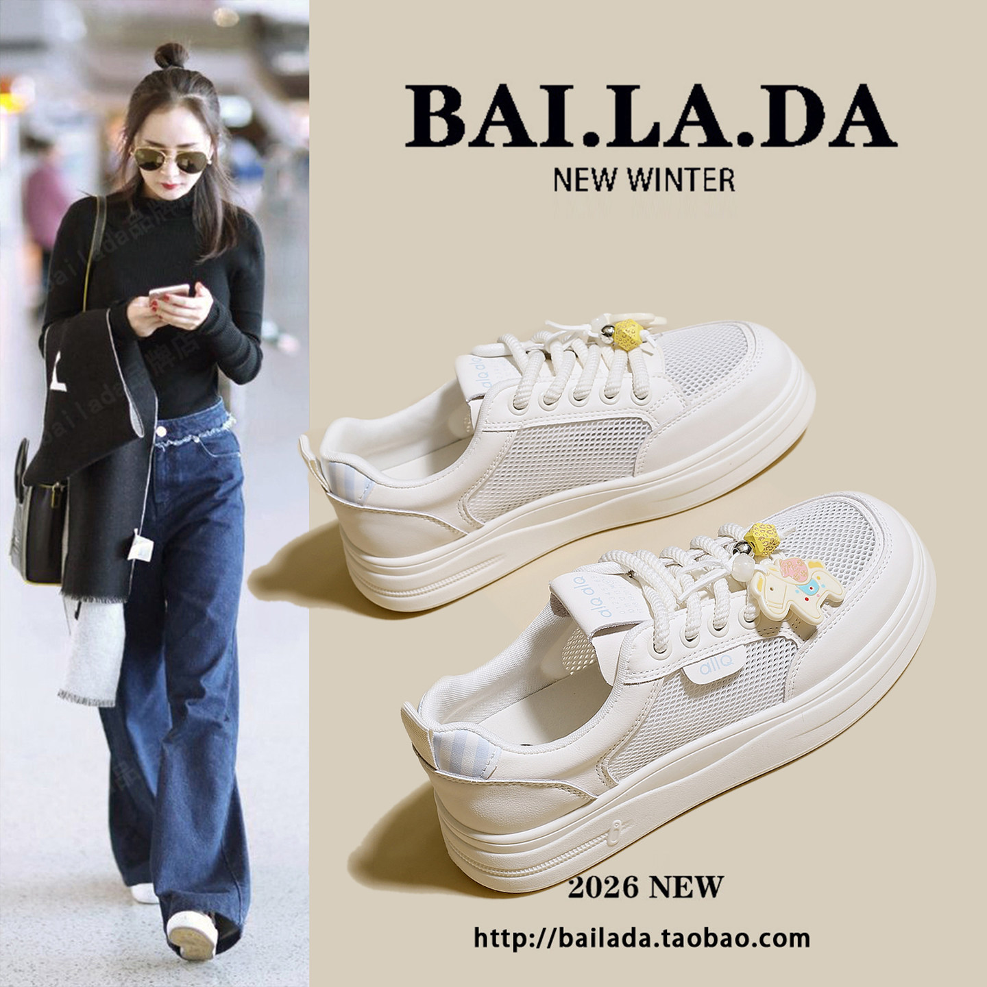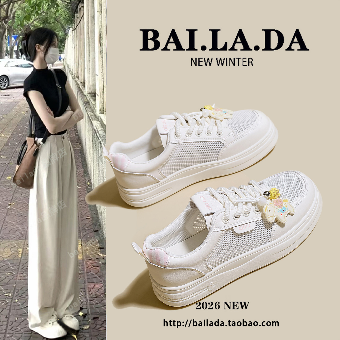 爆款超火网面厚底小白女鞋女款2026春夏季新款百搭休闲透气板鞋子
