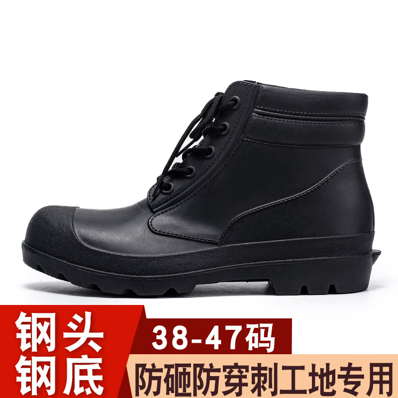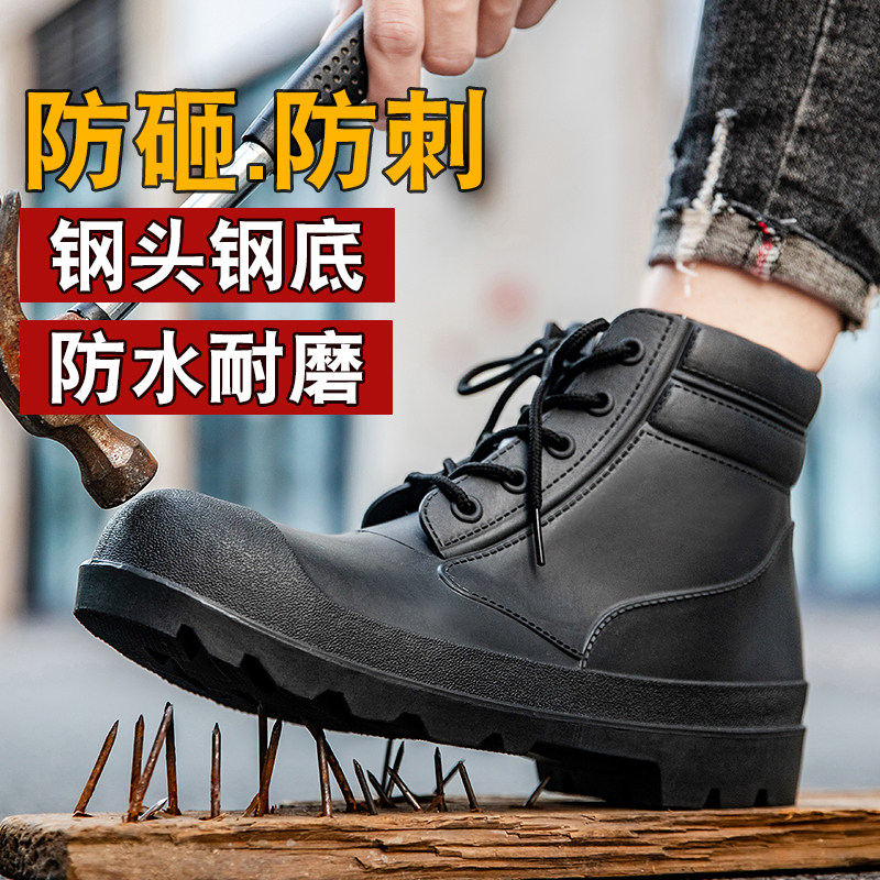 劳保鞋男士短筒防水防油耐磨系带防砸防刺穿加厚底防滑透气工作鞋