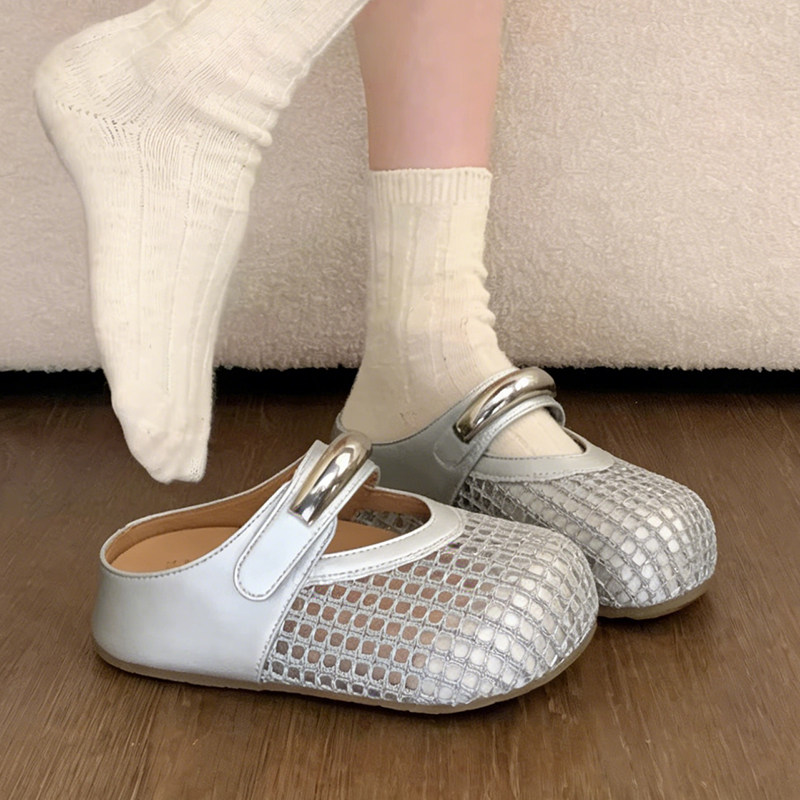镂空包头半拖鞋女夏外穿超火2026新款网面透气网鞋内增高勃肯凉鞋