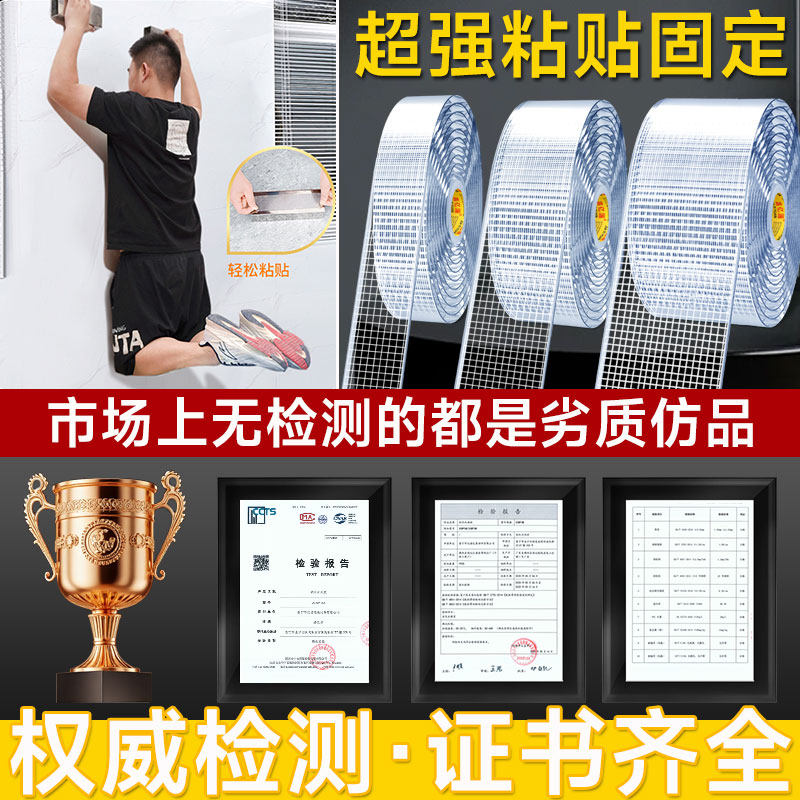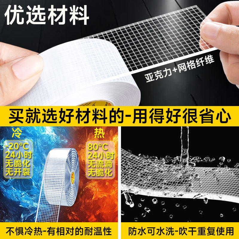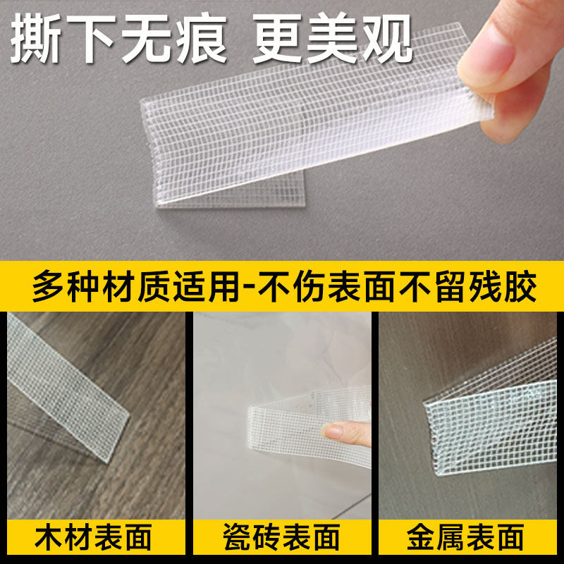 布基纳米双面胶高粘度不留痕透明强力固定墙面汽车专用防水超强力胶水贴对联免钉背胶网格魔术防滑贴无痕胶带