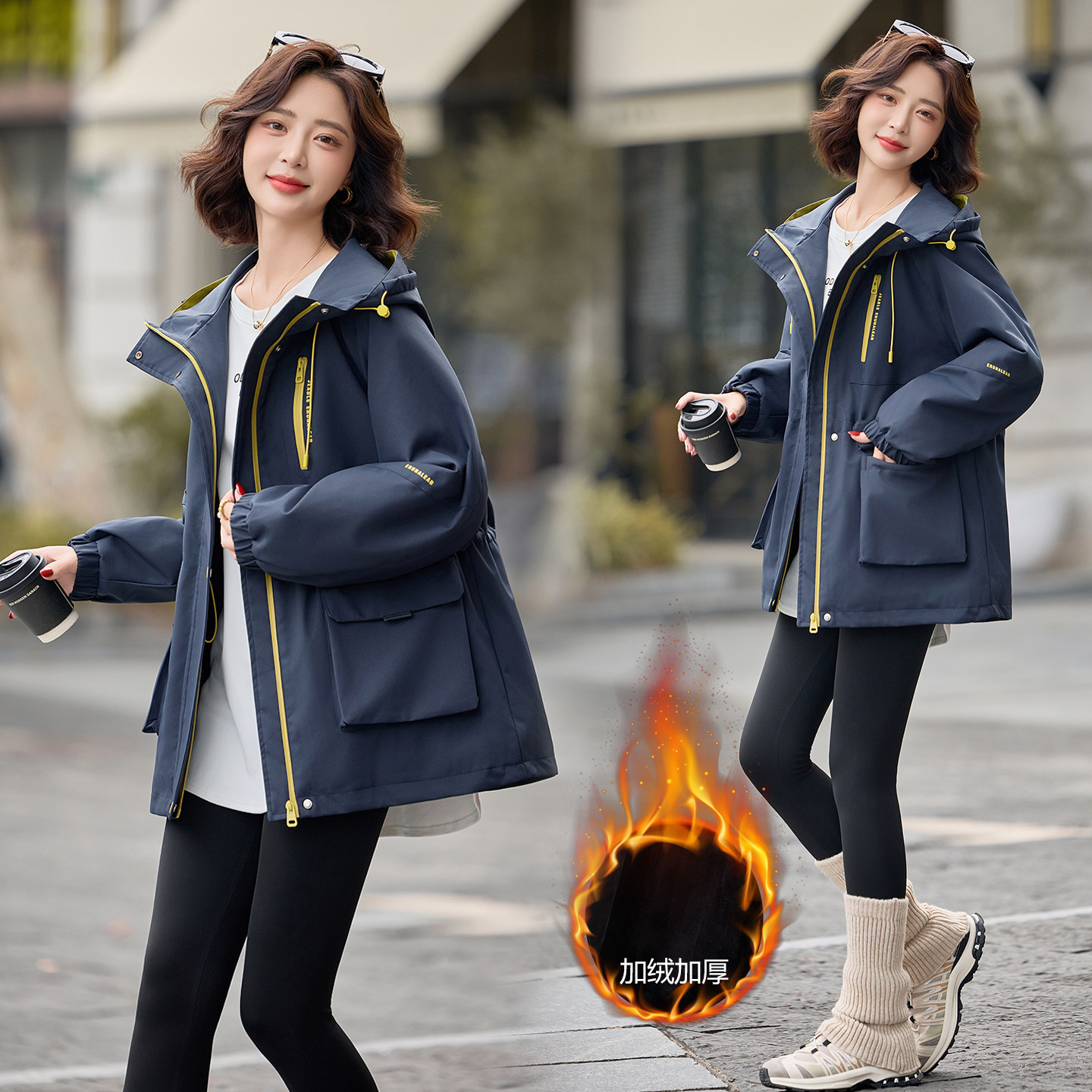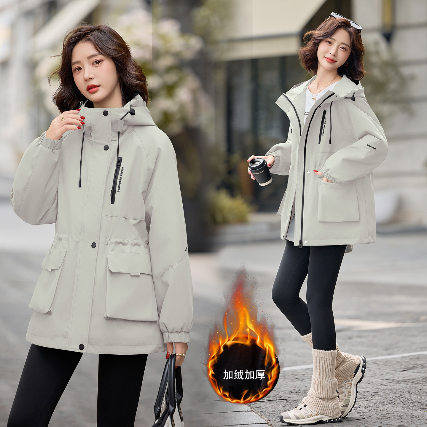 派克服女冬季新款加厚加绒2025韩版时尚宽松洋气连帽减龄棉服外套