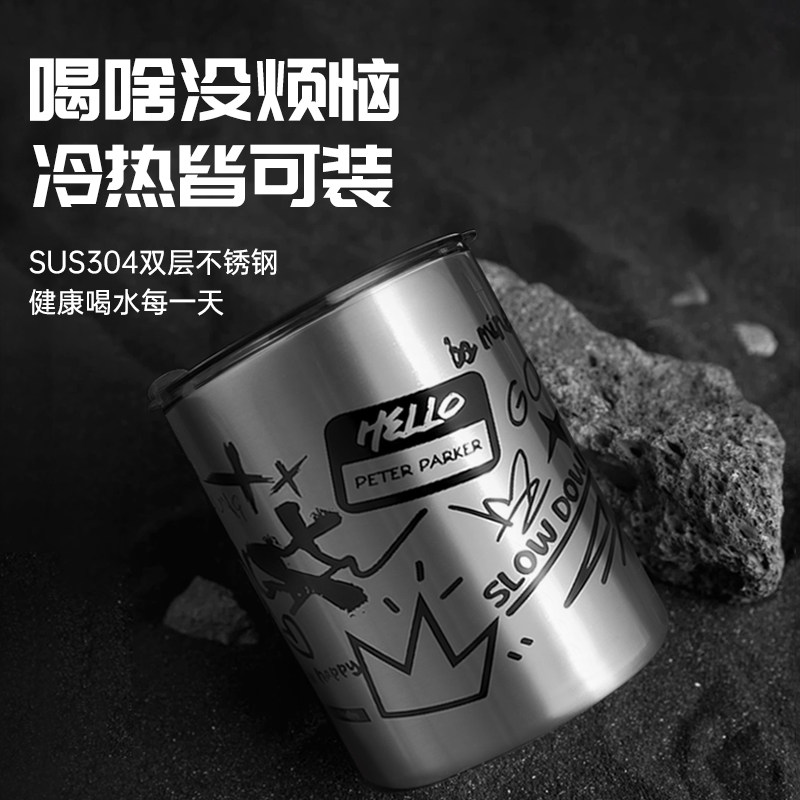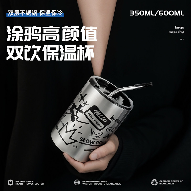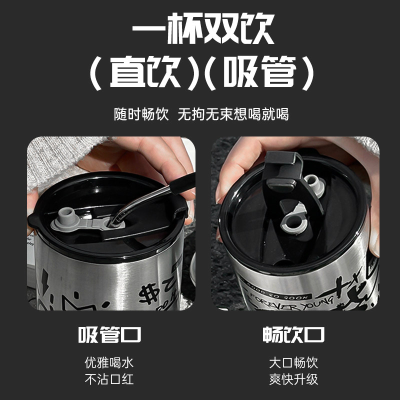 大容量不锈钢咖啡杯男生款便携外带保温杯子办公室简约吸管喝水杯